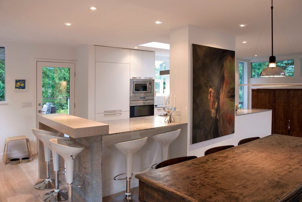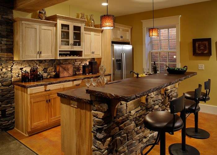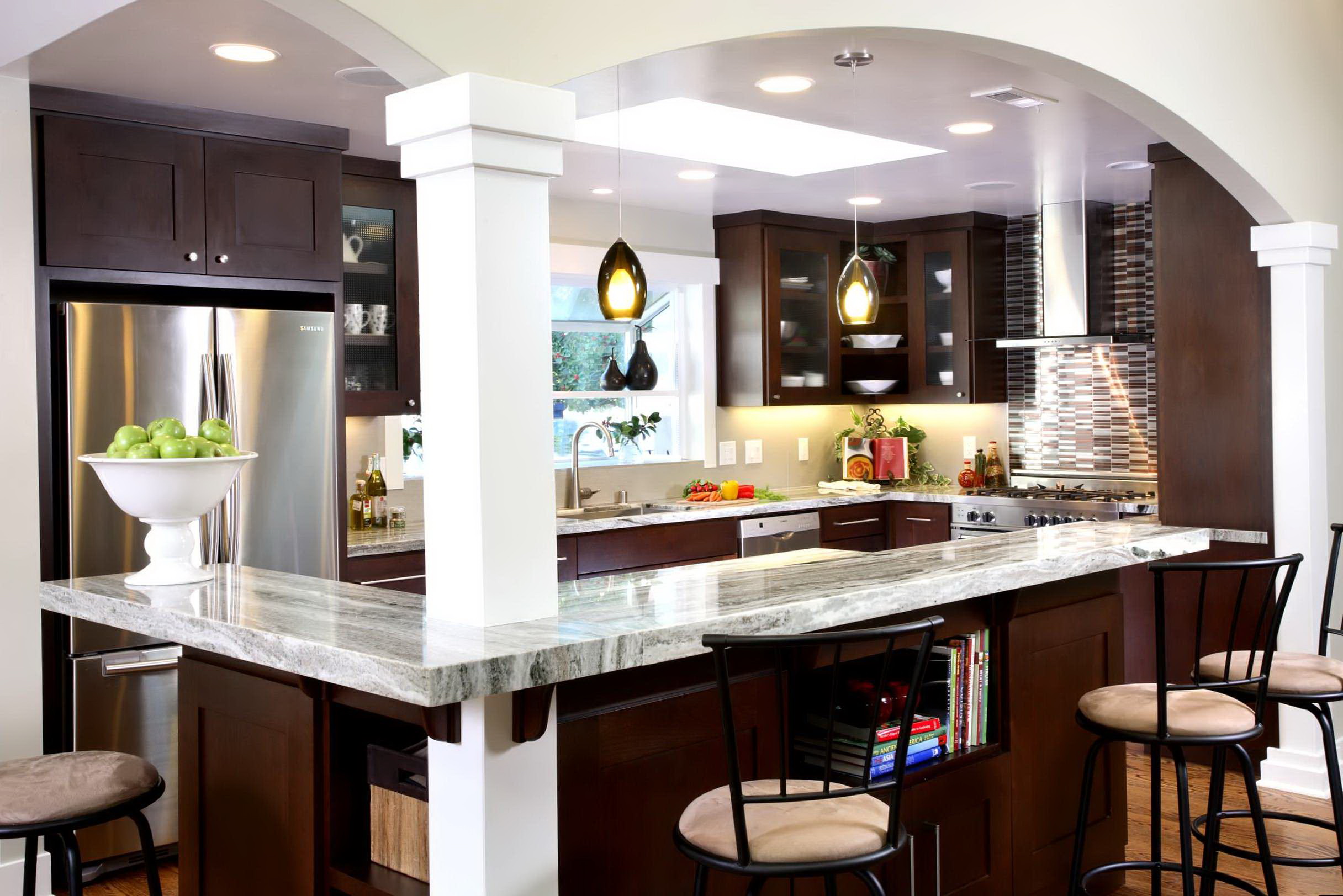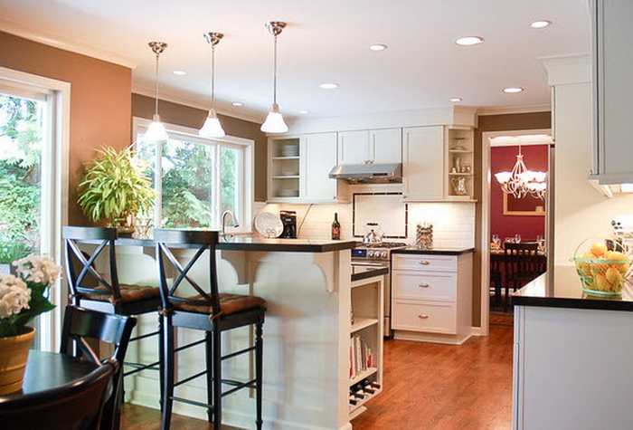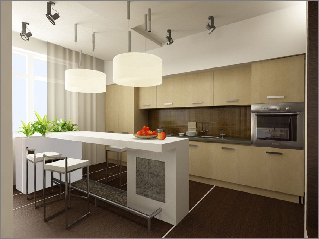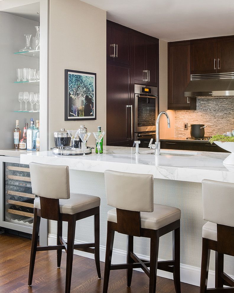 เคาน์เตอร์บาร์โดยไม่คำนึงถึงขนาดและรูปร่างของห้องครัวสามารถเพิ่มความน่าสนใจที่จะทำหน้าที่ที่จำเป็นและตกแต่งภายใน