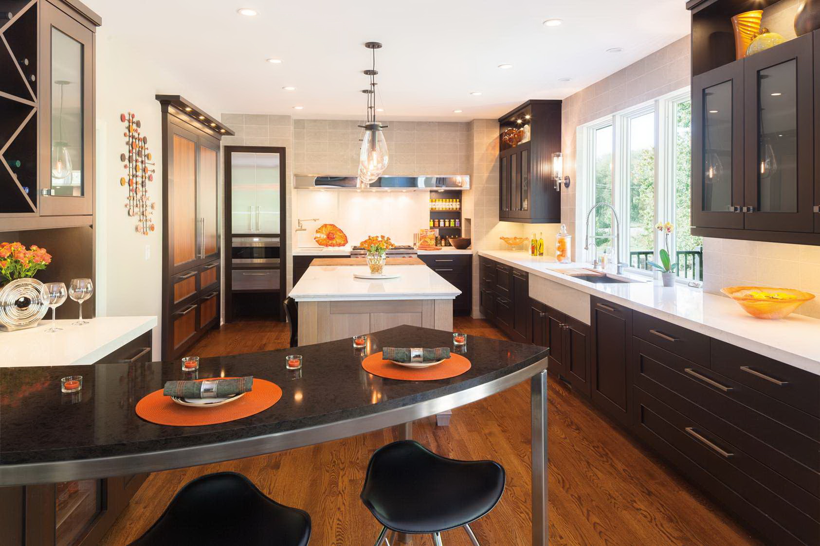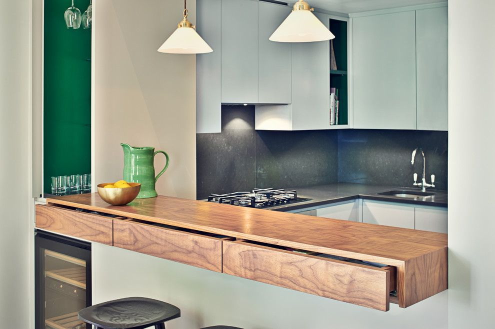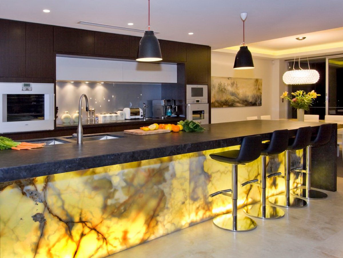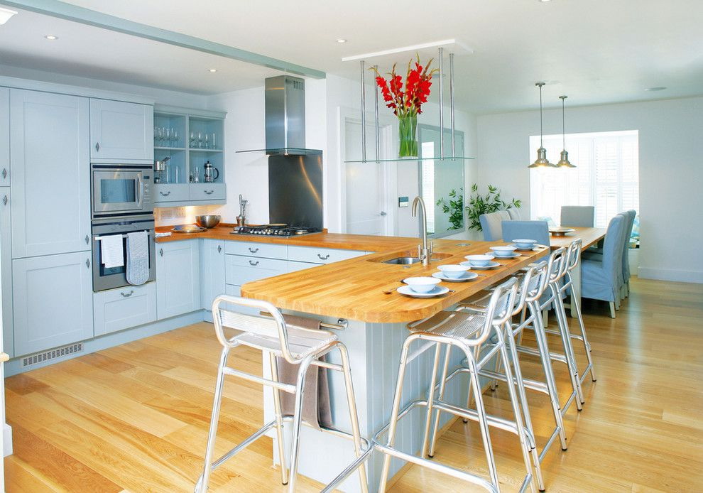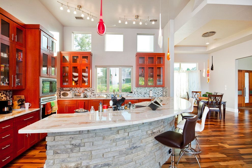 เคาน์เตอร์บาร์โดยไม่คำนึงถึงขนาดและรูปร่างของห้องครัวสามารถเพิ่มความน่าสนใจที่จะทำหน้าที่ที่จำเป็นและตกแต่งภายใน