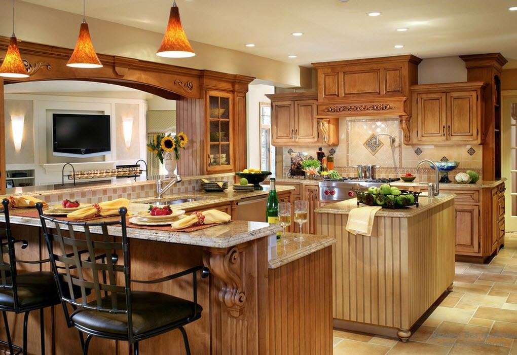 หากพื้นที่ครัวมีความสำคัญจากนั้นในระหว่างการก่อตัวของการตกแต่งภายในคุณสามารถให้อิสระกับตัวเองและยืนในรูปแบบของเกาะ มันสามารถเป็นโครงสร้างที่เป็นอิสระและแนบมากับอ่างล้างจานที่ตั้งอยู่ในใจกลางของห้องหรือตัวอย่างเช่นเตา