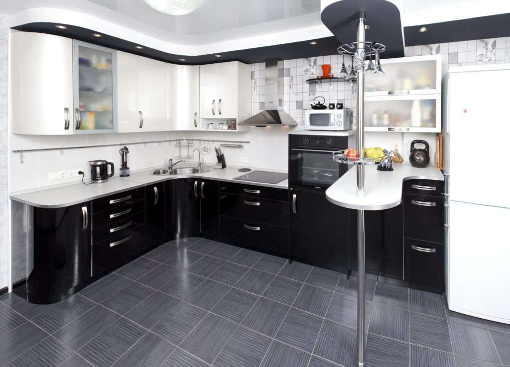 เลย์เอาต์ห้องครัวรูปตัว L เป็นตัวเลือกที่ใช้บ่อยสำหรับห้องขนาดเล็ก ด้วยข้อตกลงนี้พยายามเพิ่มพื้นที่ว่าง แต่อาจมีความไม่สมดุลของสถานการณ์เมื่อส่วนหนึ่งของห้องมีเฟอร์นิเจอร์และอุปกรณ์ส่วนเกิน