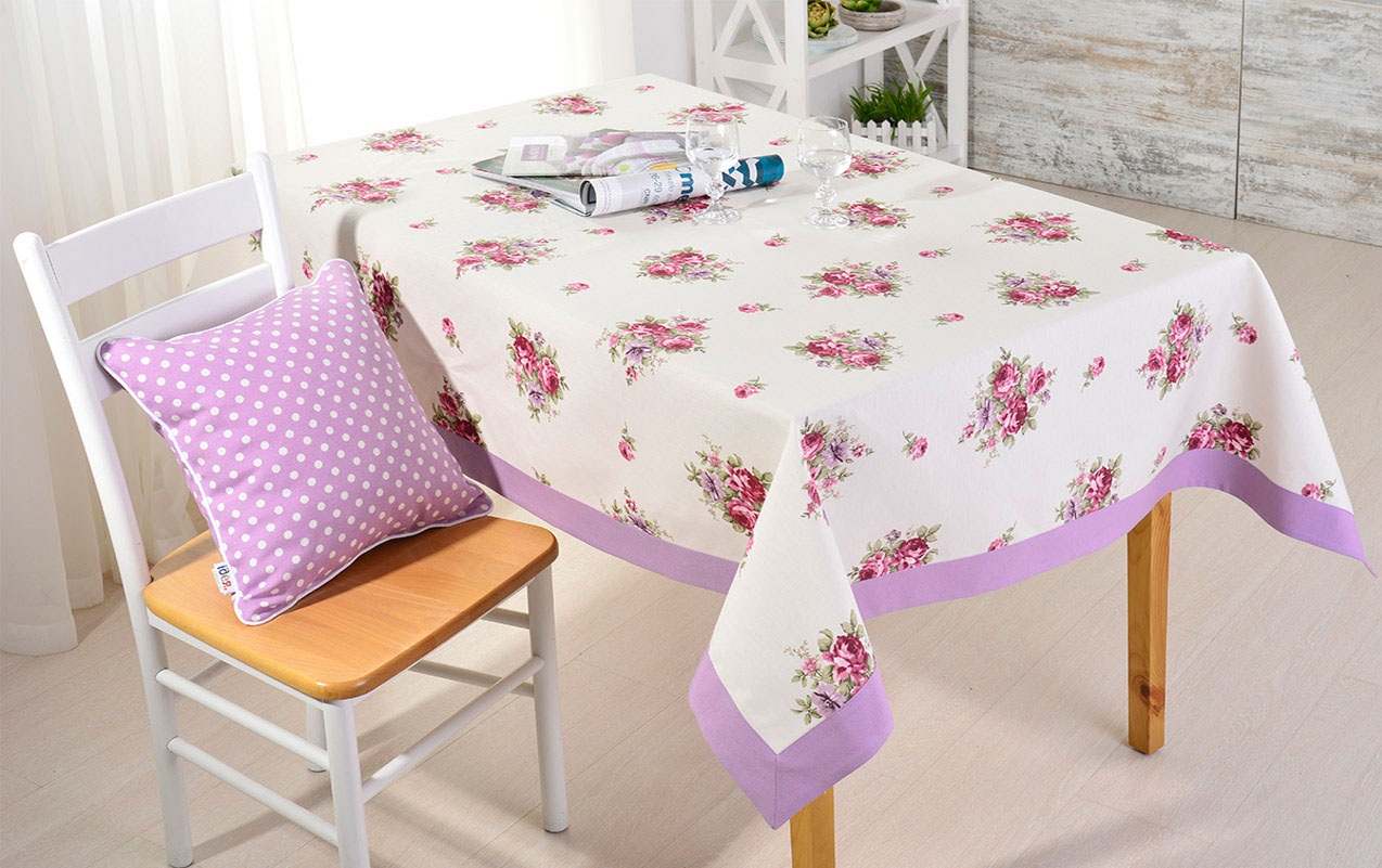 ผ้าปูโต๊ะ คุณสามารถปักด้วยด้ายสีม่วงสลัวกริชตกแต่งด้วย merezhka ในโทนกับเธอ - ผ้าเช็ดปากที่มีสีเดียวกัน ดูเหมือนเรื่องเล็กและความสมบูรณ์ของแนวคิดการออกแบบนั้นสมบูรณ์แบบ