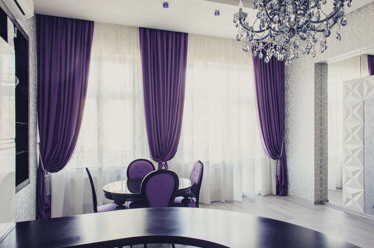 สำหรับผ้าม่านสีม่วงขอแนะนำให้เลือกรายละเอียดเล็ก ๆ น้อย ๆ ของการตกแต่งภายใน: