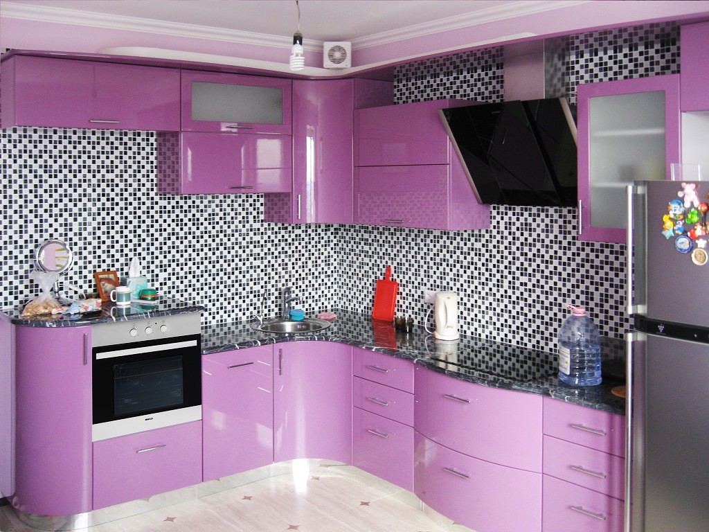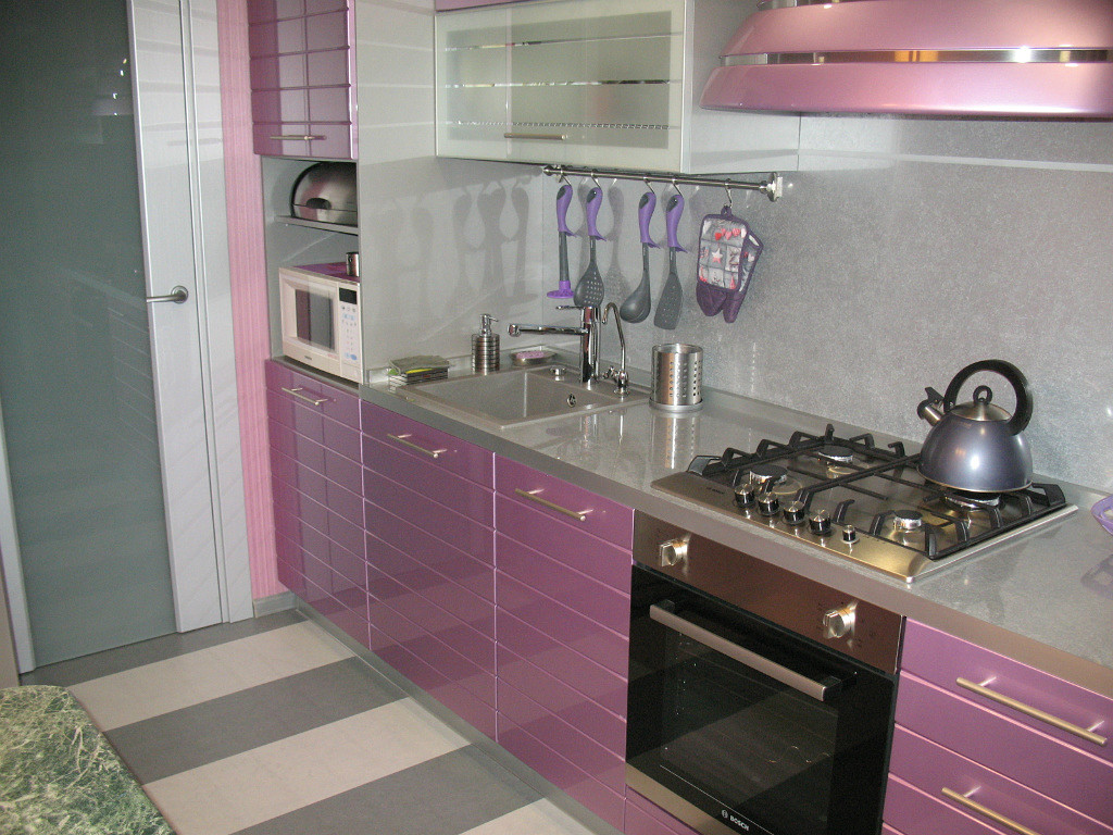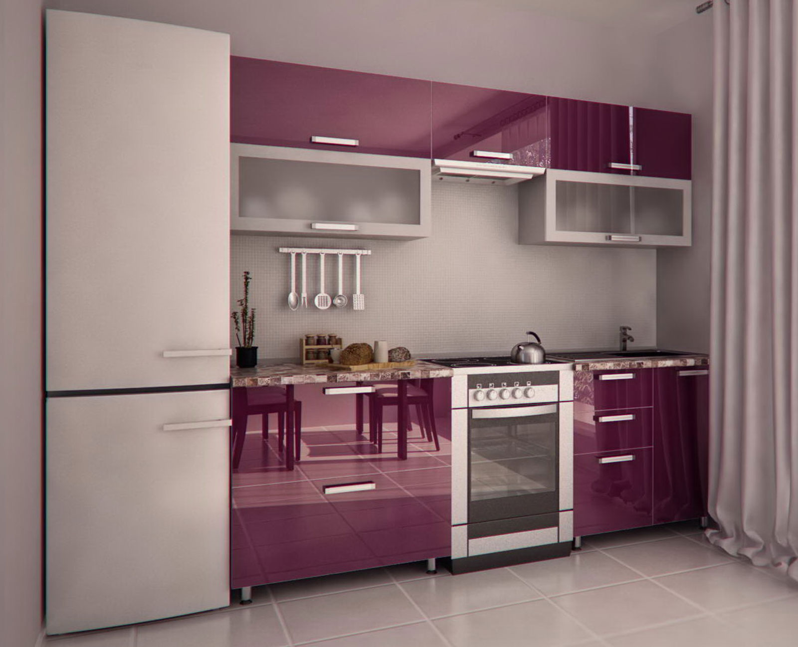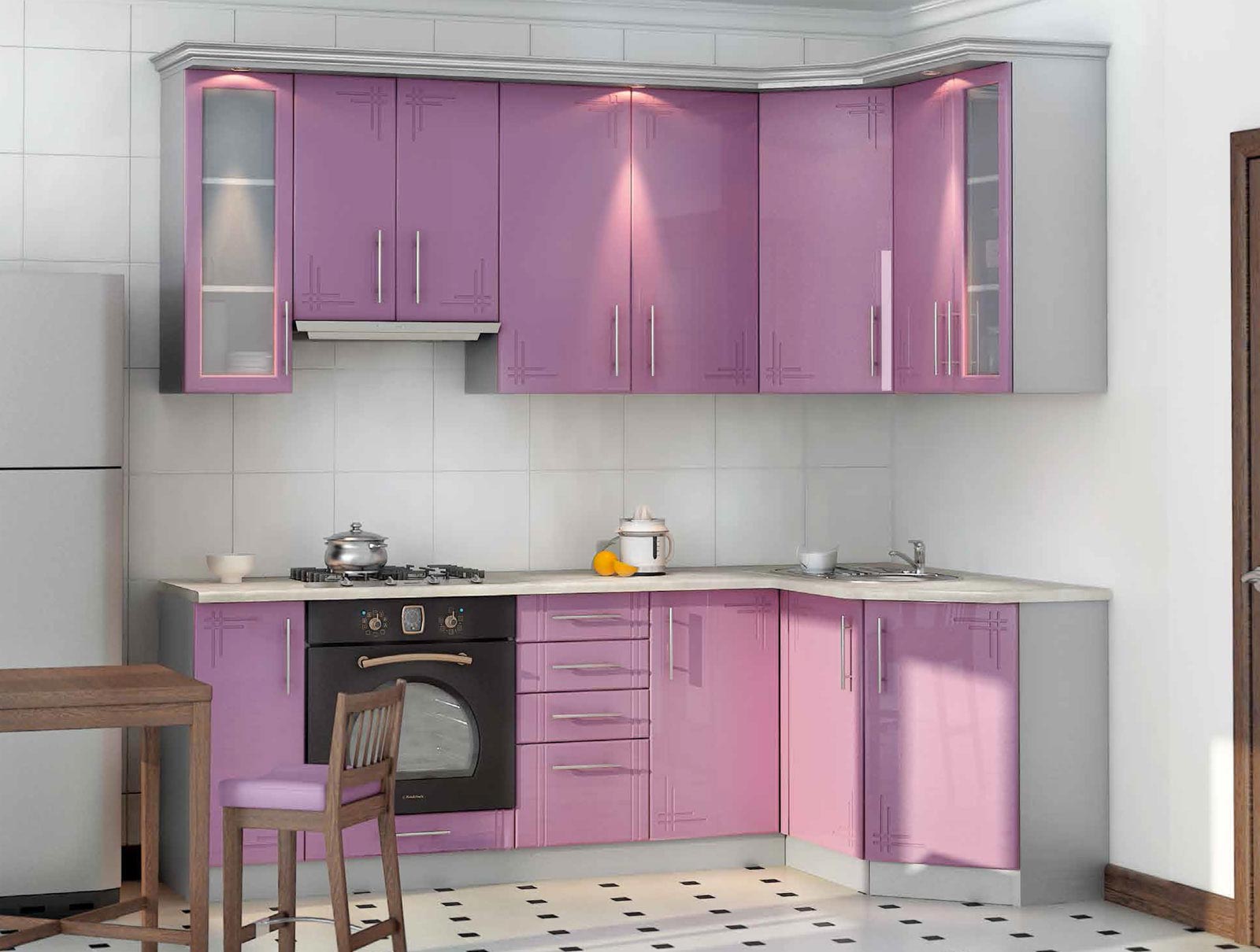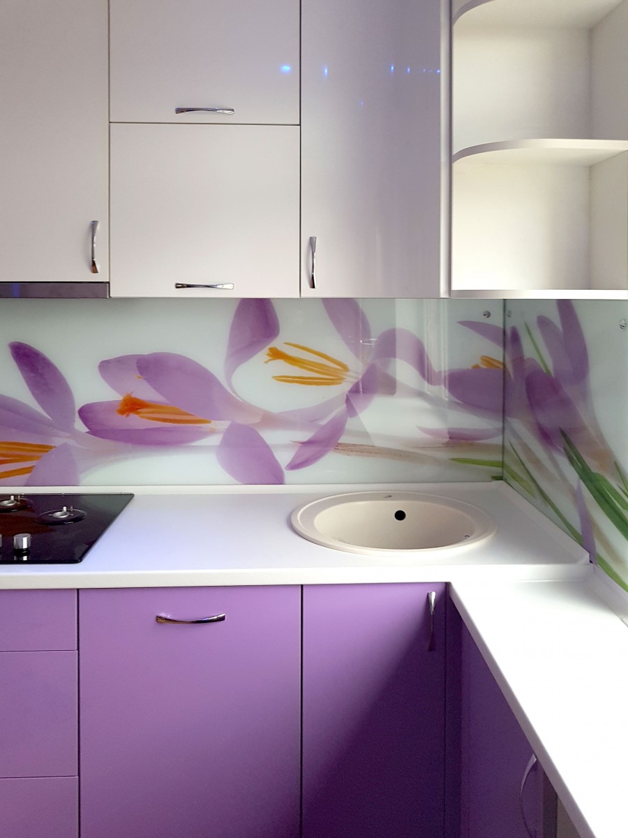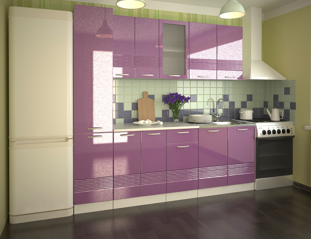 เจือจางของเฉดสีม่วงเข้มด้วยสีที่เบาและเบาที่สุด - ขาว - ผลกำไรทั้งสองด้าน สีขาวสิ้นสุดที่จะปลอดเชื้อและ "ว่าง" และการผสมของสีน้ำเงินและสีแดงจะกลายเป็นแสงและสว่าง ชุดเฟอร์นิเจอร์ที่รวมสองสีนี้เข้าด้วยกันจะไม่มีใครสังเกตเห็น. พวกเขาคือความสำคัญหลักของห้องครัว