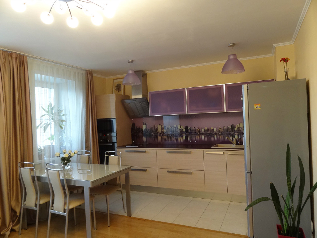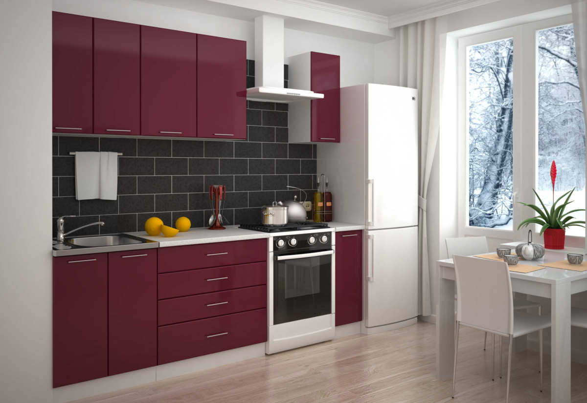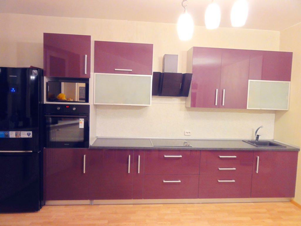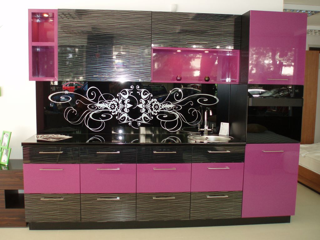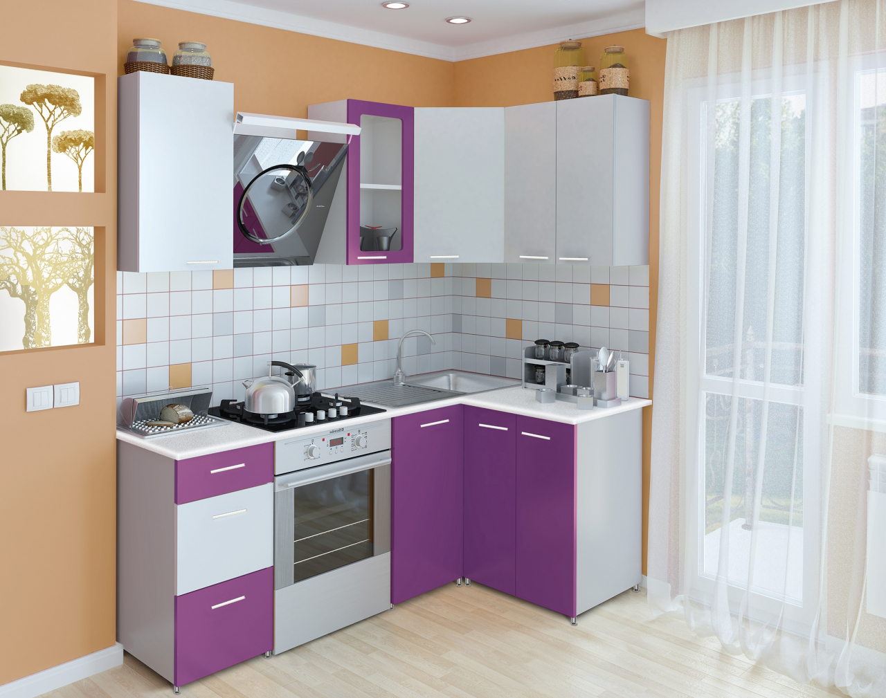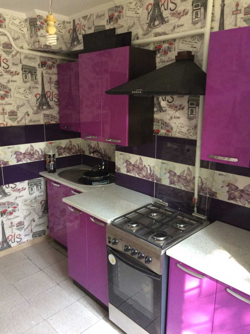 เจือจางของเฉดสีม่วงเข้มด้วยสีที่เบาและเบาที่สุด - ขาว - ผลกำไรทั้งสองด้าน สีขาวสิ้นสุดที่จะปลอดเชื้อและ "ว่าง" และการผสมของสีน้ำเงินและสีแดงจะกลายเป็นแสงและสว่าง ชุดเฟอร์นิเจอร์ที่รวมสองสีนี้เข้าด้วยกันจะไม่มีใครสังเกตเห็น. พวกเขาคือความสำคัญหลักของห้องครัว
