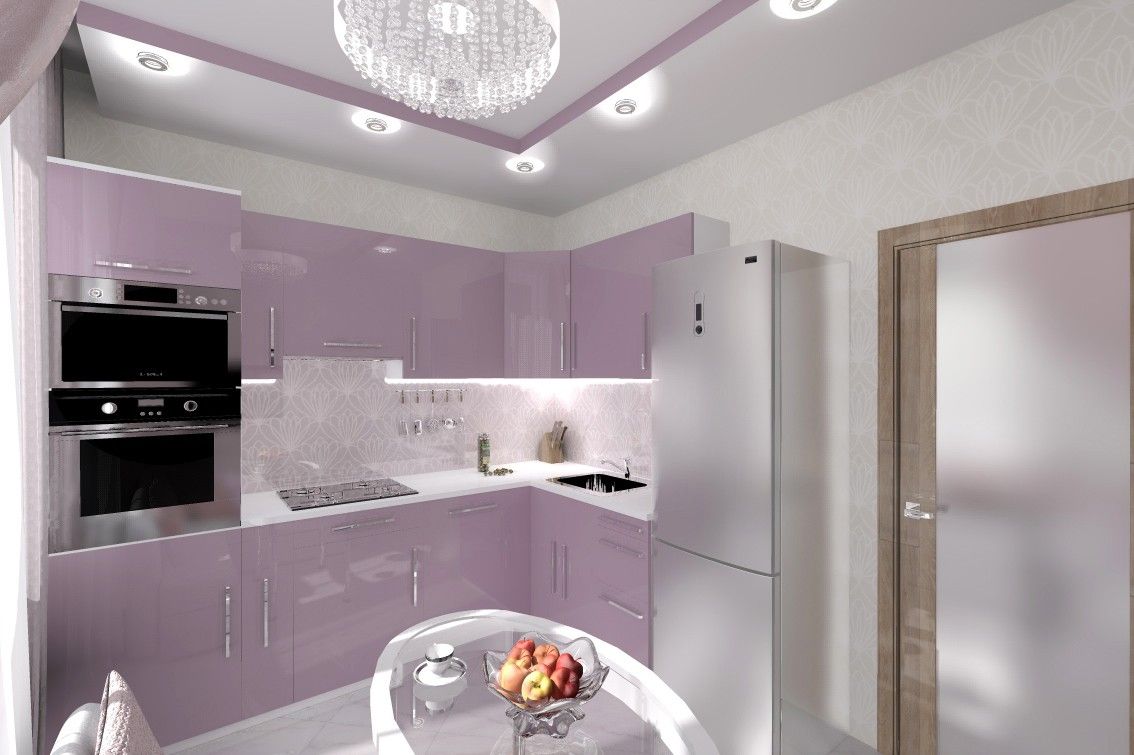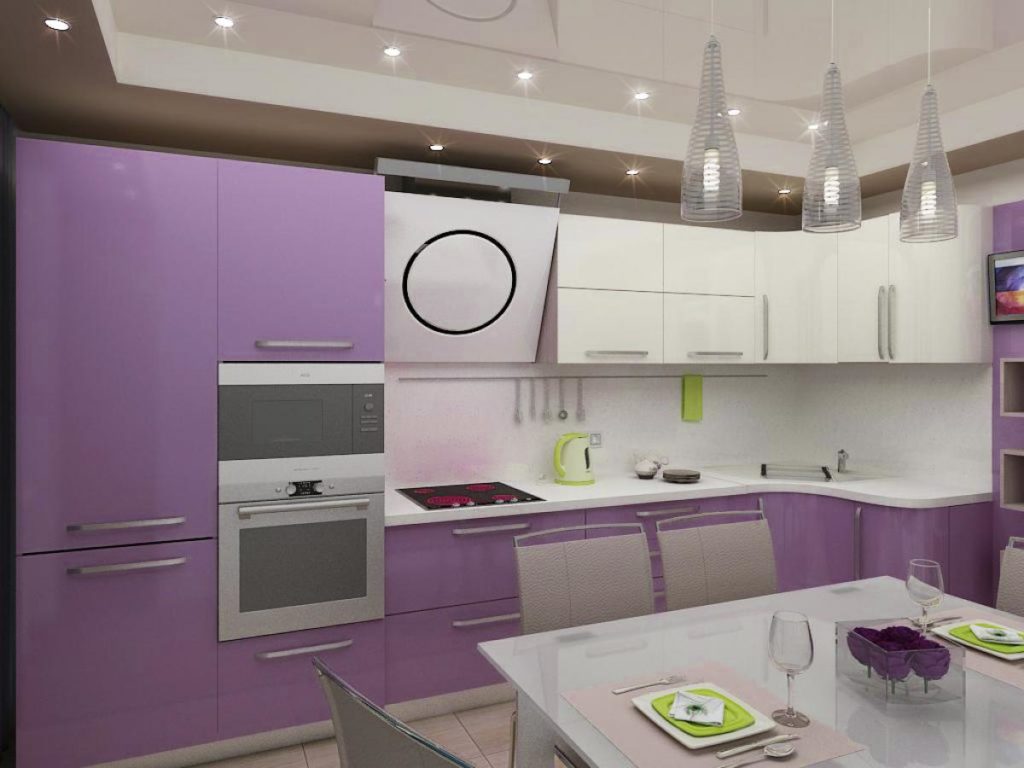 เพดาน - เบากว่าผนังหลายเท่า. จากสีของสีม่วงมันเป็นเรื่องง่ายที่จะทำ สำหรับห้องครัวที่ทำจากชุดสีขาวอมม่วงสมมติว่าเป็นสีขาวบริสุทธิ์ อย่างไรก็ตามมีประสิทธิภาพมากขึ้นนุ่มนวลธรรมชาติที่เข้มงวดของห้องนมด้านบน