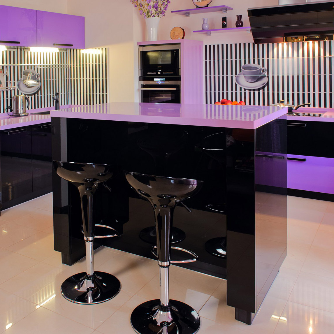 ตามที่นักวิทยาศาสตร์กล่าวว่าสีม่วงมักเป็นที่ต้องการของคนที่มีความคิดสร้างสรรค์ผู้ที่มีจินตนาการมากมายการพัฒนาสัญชาตญาณสมดุลทางวิญญาณ อาจช่วยให้พวกเขาเสริมสร้างความมั่นใจในตนเองและเป็นบวกมากขึ้น ดังนั้นอย่าหลีกเลี่ยง ปล่อยให้มันนำความสง่างามสไตล์และความสะดวกสบายมาสู่รัศมีของห้องครัวของเรา แล้วมันจะอบอุ่นไม่เพียง แต่สำหรับสมาชิกในครอบครัว แต่ยังสำหรับแขก