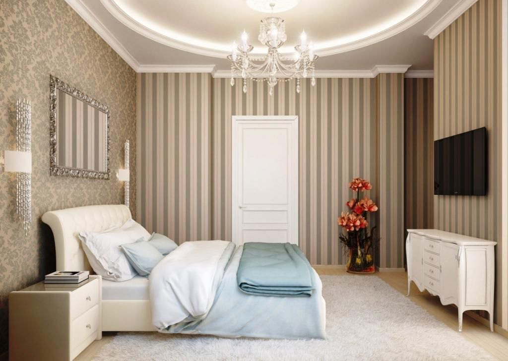 - ด้วยเพดานที่สูงการผสมผสานของเครื่องประดับแนวตั้งจึงไม่อาจยอมรับได้ หากต้องการปรับความสูงของฝาครอบเพดานให้อนุญาตให้มีลายเส้นแนวนอนและภาพสามมิติ ในพื้นที่ขนาดเล็กการรวมกันของวอลล์เปเปอร์แบบโมโนโครมแสงและรูปแบบขนาดเล็กที่ไม่เด่นนั้นกลมกลืนกัน
