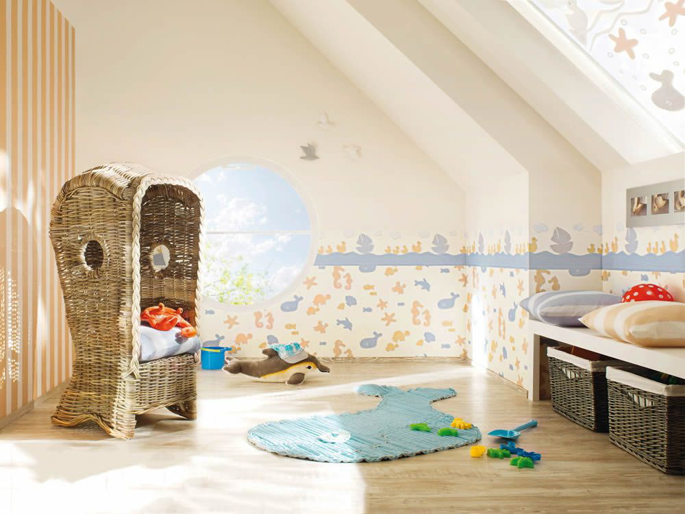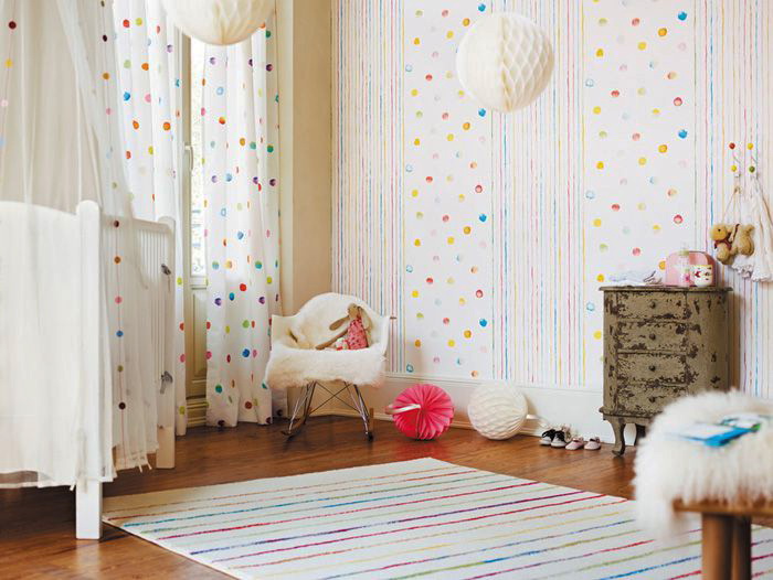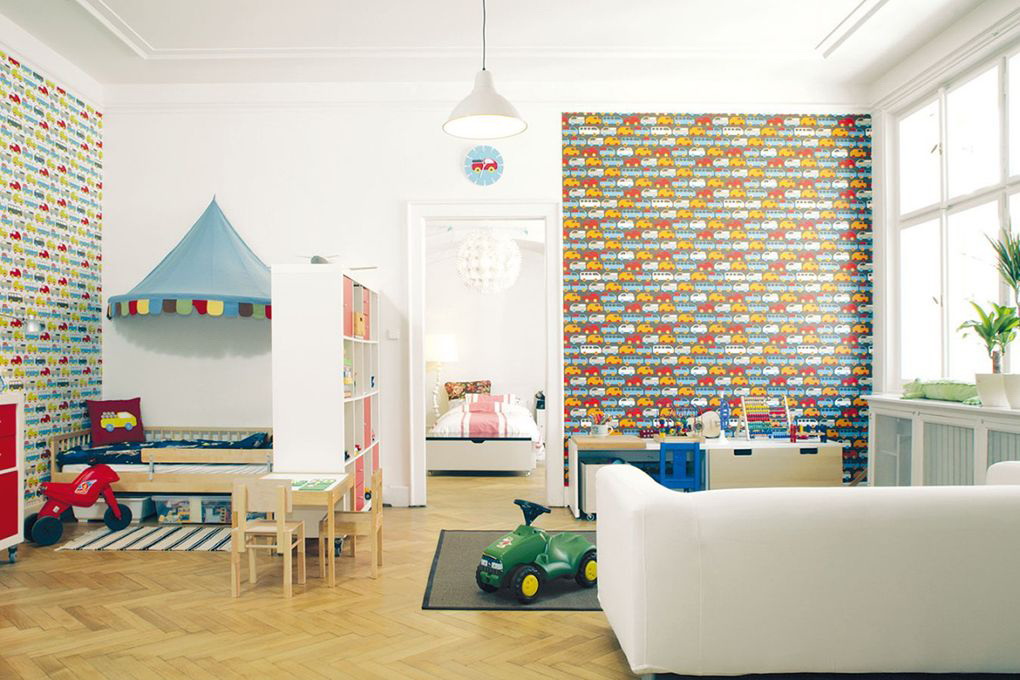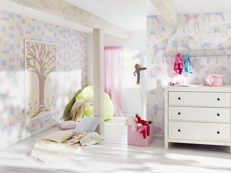 การปูผนังห้องเด็กควรเป็นไปตามลักษณะและความสนใจของเด็ก วอลล์เปเปอร์รวมสามารถแนวตั้งแนวนอนหรือในทางอื่น บ่อยขึ้นสำหรับ เด็ก ใช้การออกแบบการเย็บปะติดปะต่อกัน นี้เป็นรุ่นที่ซับซ้อนของการตกแต่งชิ้นส่วนของผืนผ้าใบวอลล์เปเปอร์ที่แตกต่างกันซึ่งมีความสับสนวุ่นวายและการออกแบบที่มีสีสันจะเอาใจคนกระสับกระส่าย
