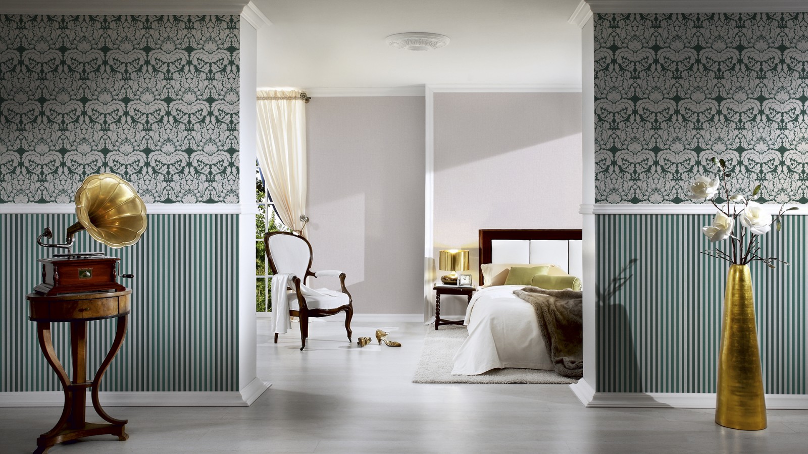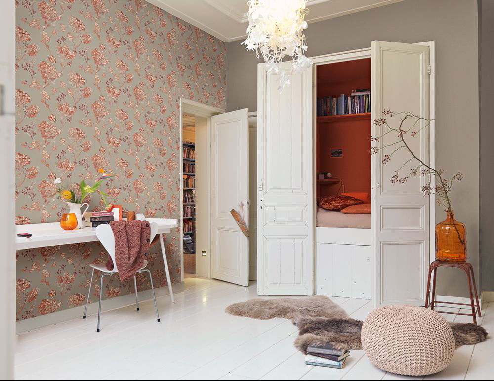 ในการสร้างการออกแบบพิเศษเราได้รวมวอลล์เปเปอร์ที่คำนึงถึงสีพื้นผิวเรขาคณิตและเครื่องประดับของภาพ
