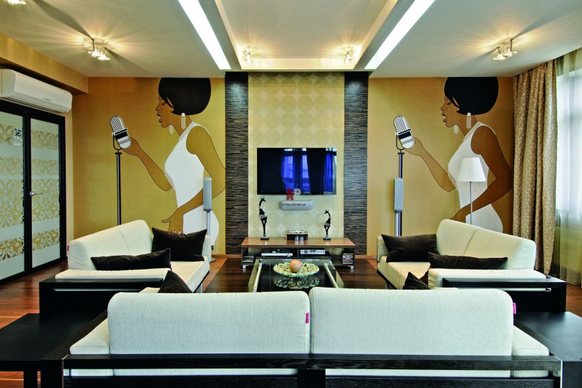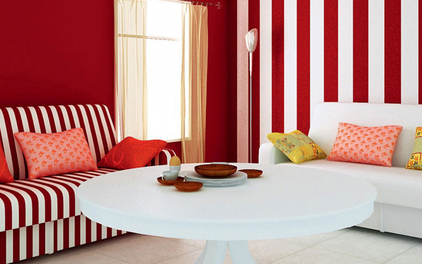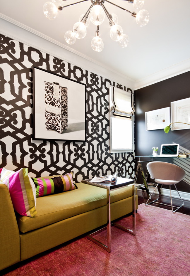เพื่อให้การตกแต่งภายในมีชีวิตชีวาใช้การตกแต่งเน้นผนังที่ดึงดูดสายตาของห้องครัวห้องนอนหรือพื้นที่ทำงานตกแต่งพื้นผิวใกล้ โทรทัศน์ หรือสำหรับ โซฟา.