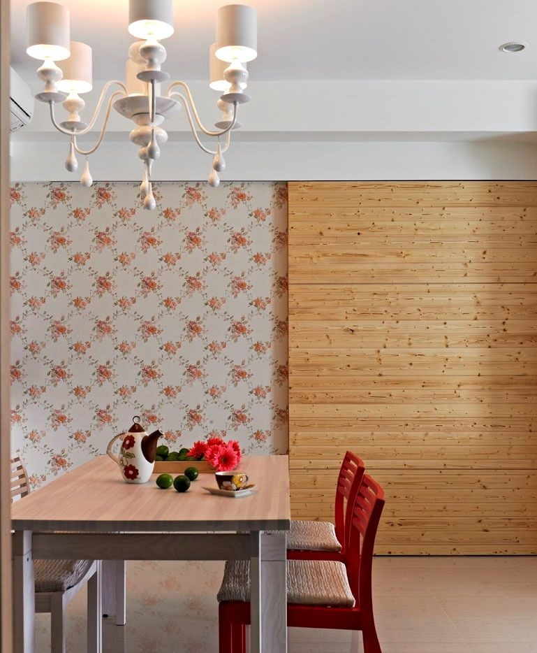 พื้นที่ใช้สอย สำหรับความคมชัดมันเป็นผลกำไรในการตกแต่ง วอลล์เปเปอร์ที่มีภาพ หรือพื้นผิวขนาดใหญ่ พอดีดี สำหรับการแยกภาพภาพถ่าย จานสีพื้นหลังในทั้งสองโซนควรอยู่ใกล้กันมากเพื่อไม่ให้มองเห็นห้องแยกกัน เมื่อคุณออกแบบห้องนั่งเล่นในสไตล์คันทรี่พื้นที่ห้องครัวสามารถโดดเด่นด้วยผืนผ้าใบ“ หิน” หรือ“ อิฐ”