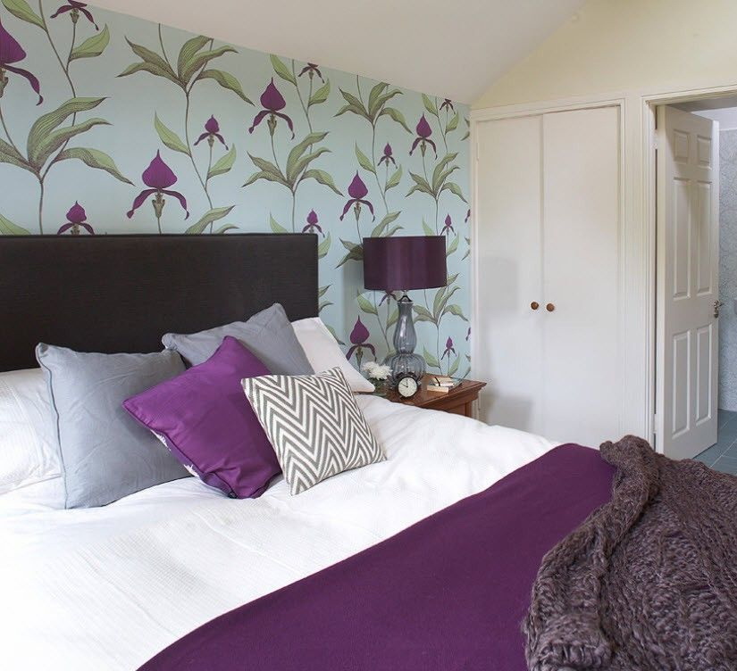 สำเนียงอาจเป็นพื้นผิวของผนังที่ตั้งอยู่ขนานกับสถานที่ที่จะนอนหลับ โซลูชันดั้งเดิม - ใช้เป็นพื้นหลังสำหรับการออกแบบ: