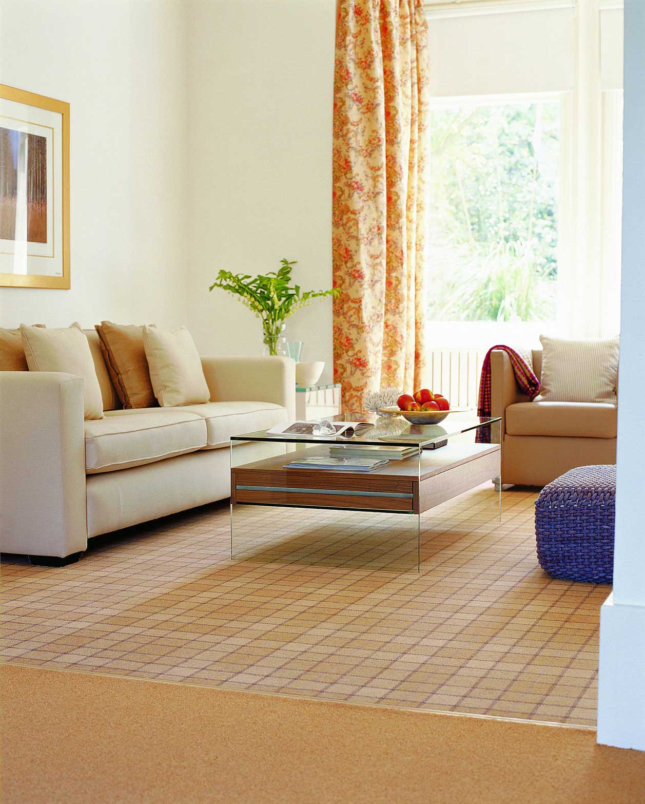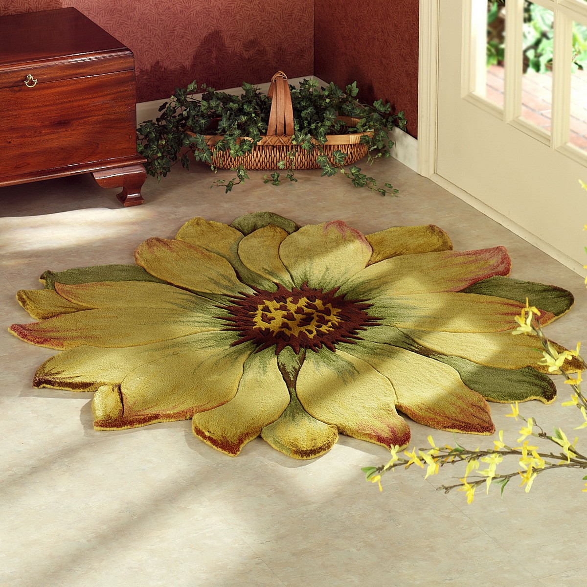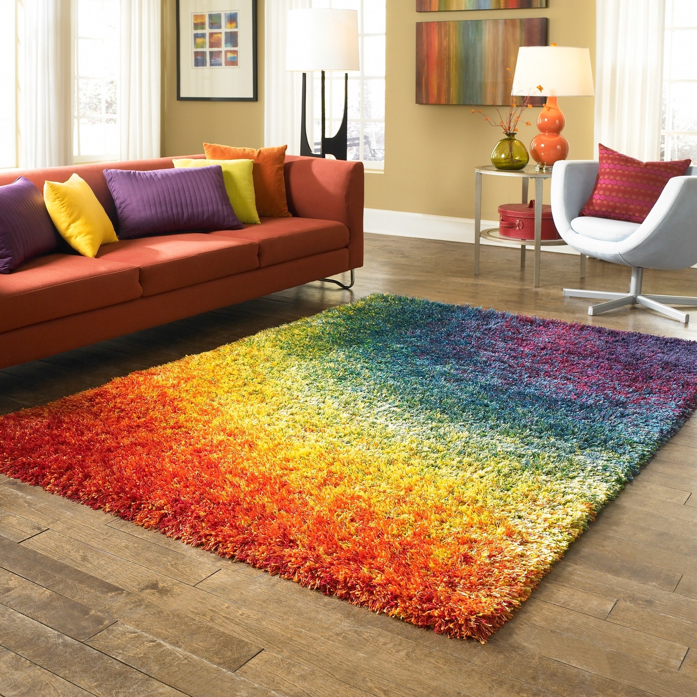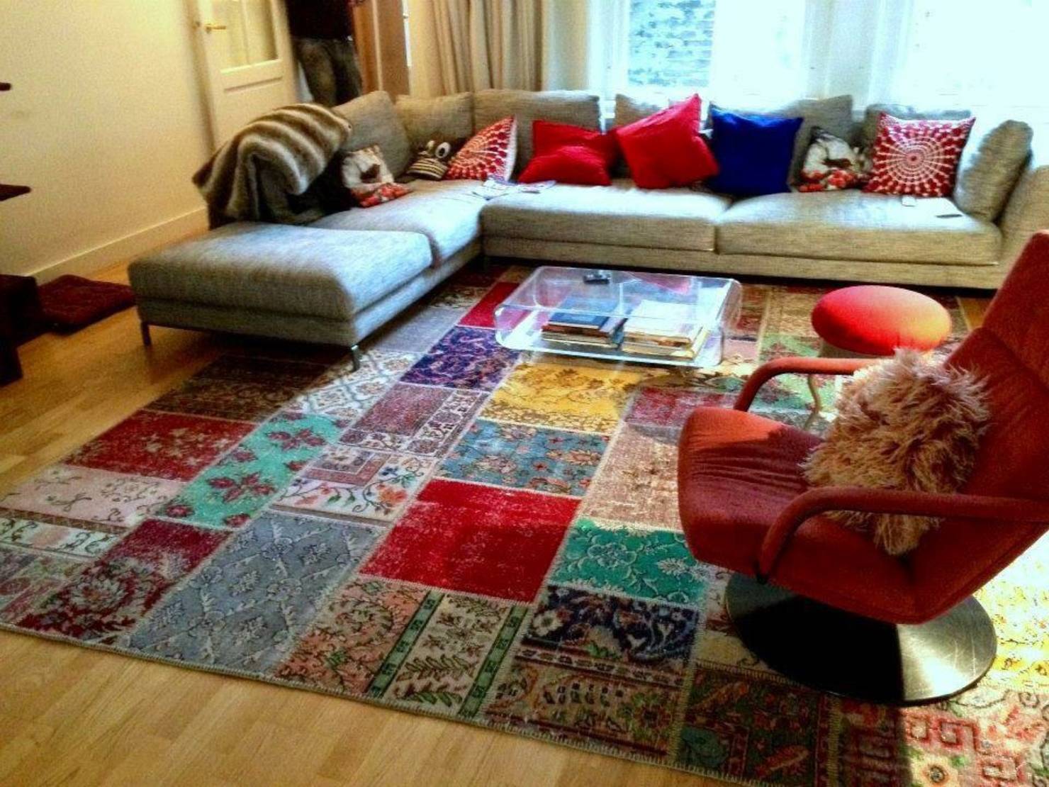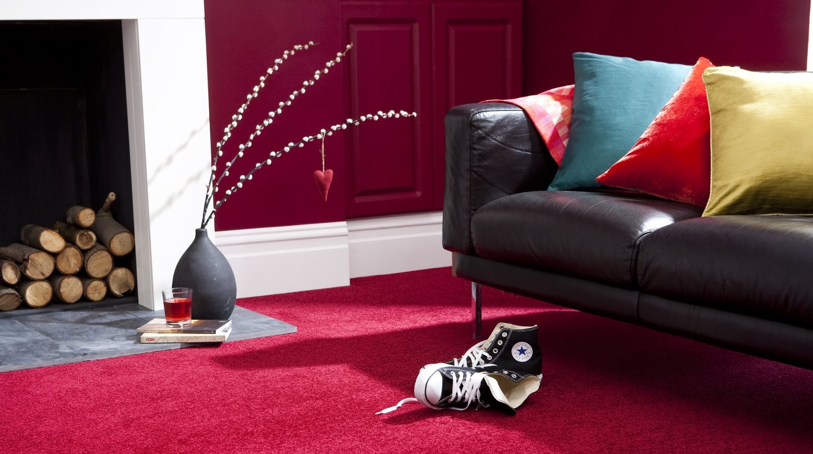 พรมหรืออุปกรณ์เสริมอื่น ๆ - เช่นผ้าม่านหรือ หมอน- สีที่อบอุ่นทำความสะอาดความเย็นในห้องและสร้างพลังงานที่อุดมสมบูรณ์