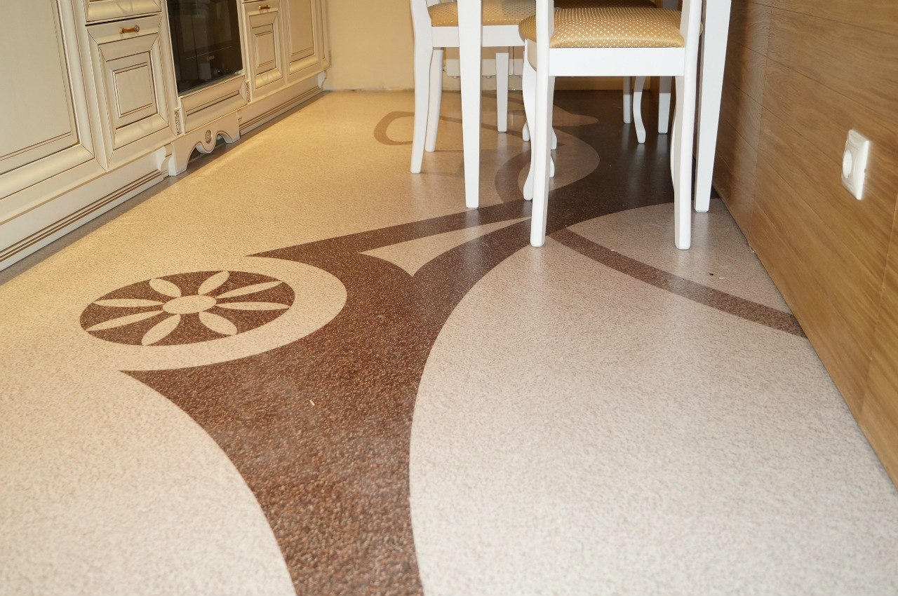 กระเบื้องพรมตัดกันอย่างน่าสนใจด้วย พื้นลามิเนต และพื้นผิวอื่น ๆ สามารถใช้งานได้หลายรุ่นในคราวเดียว