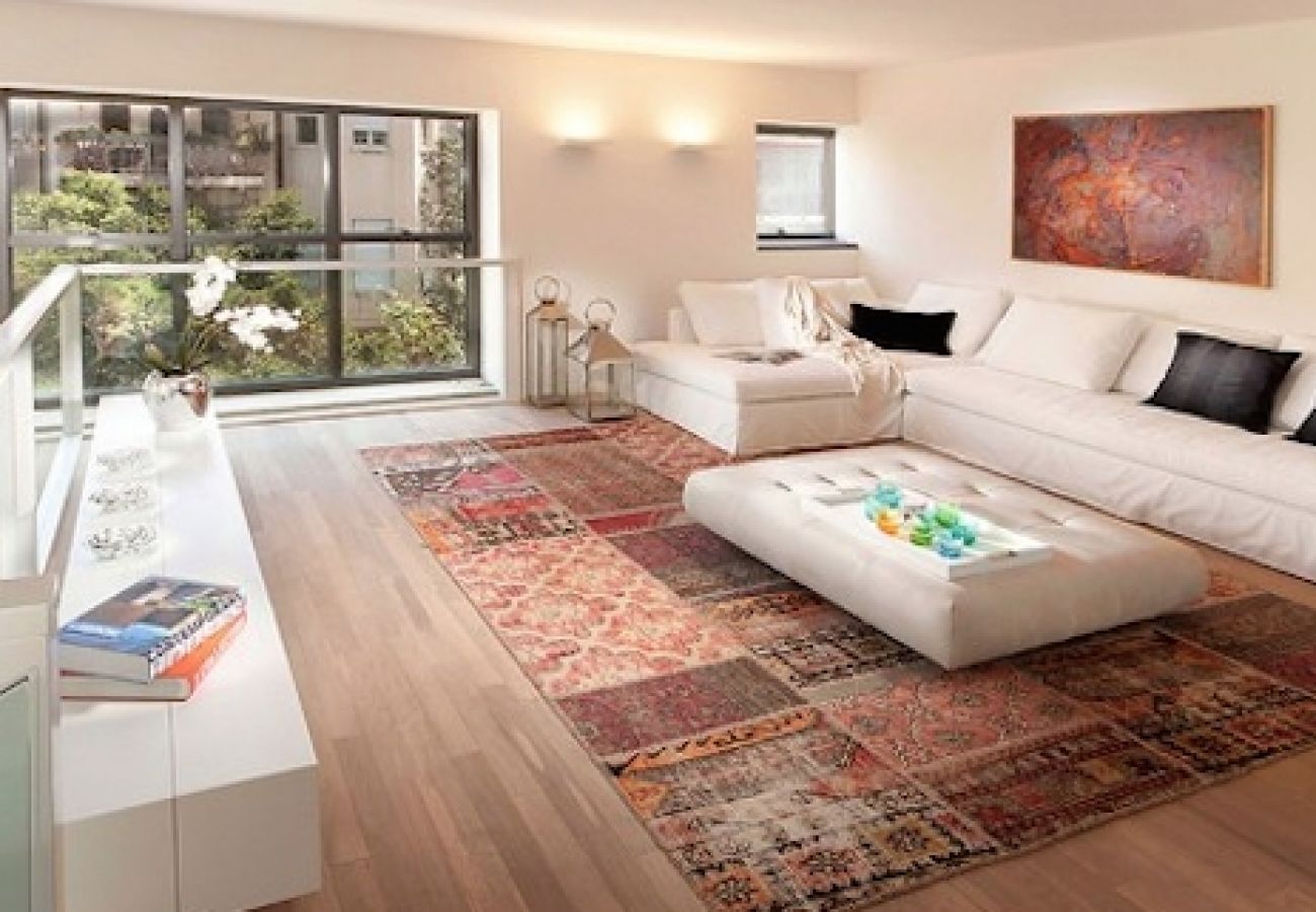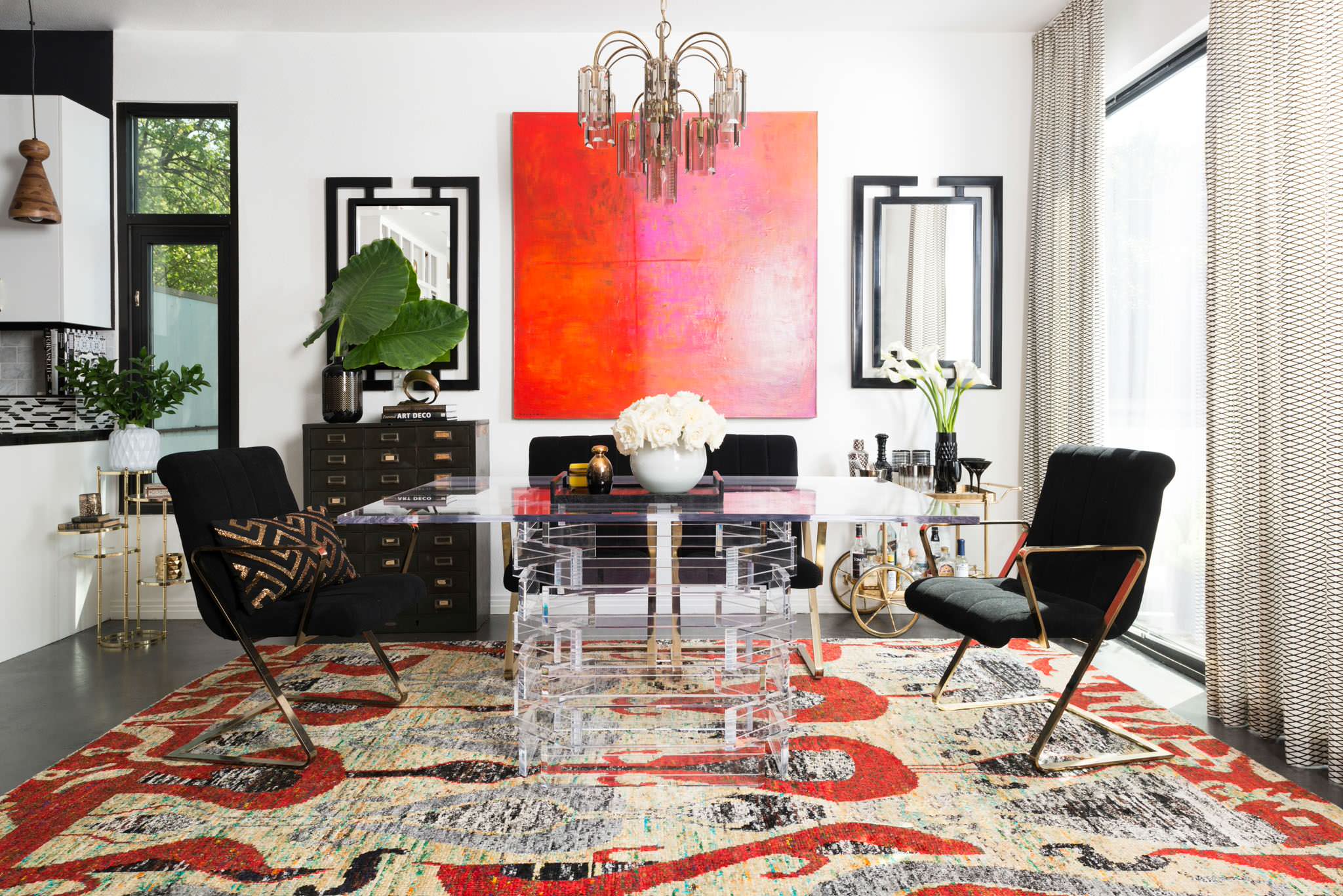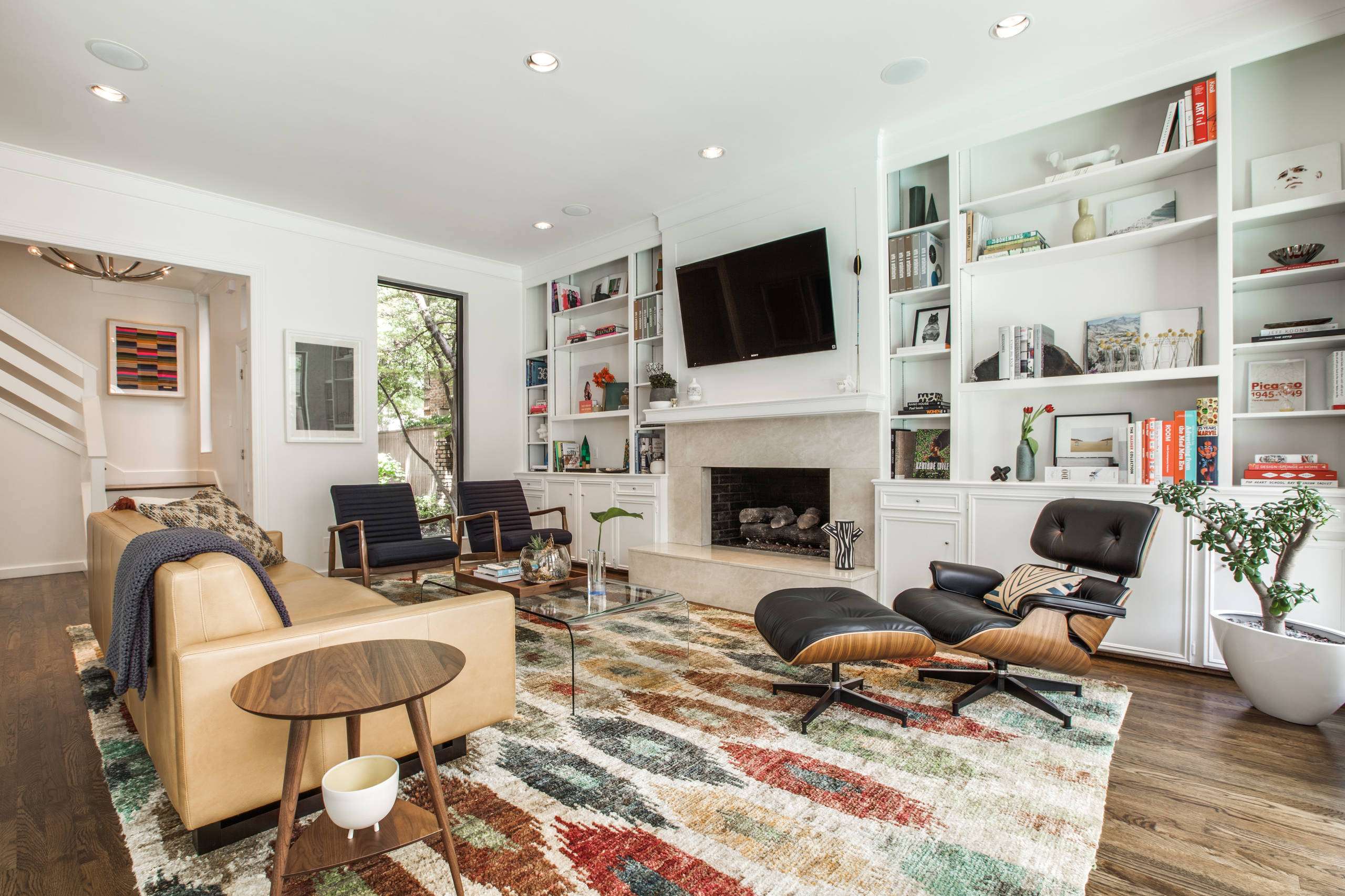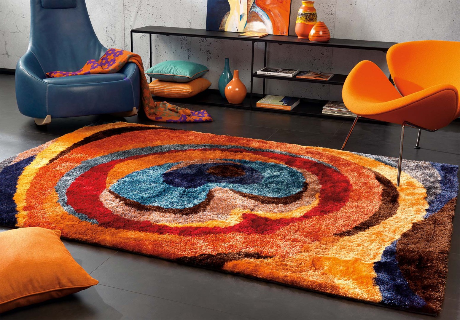 สีที่อิ่มตัวทำให้วัตถุใกล้ชิดดังนั้นช่วยทำให้ห้องเปิดโล่งขนาดใหญ่มีความสะดวกสบายและเป็นกันเองยิ่งขึ้น