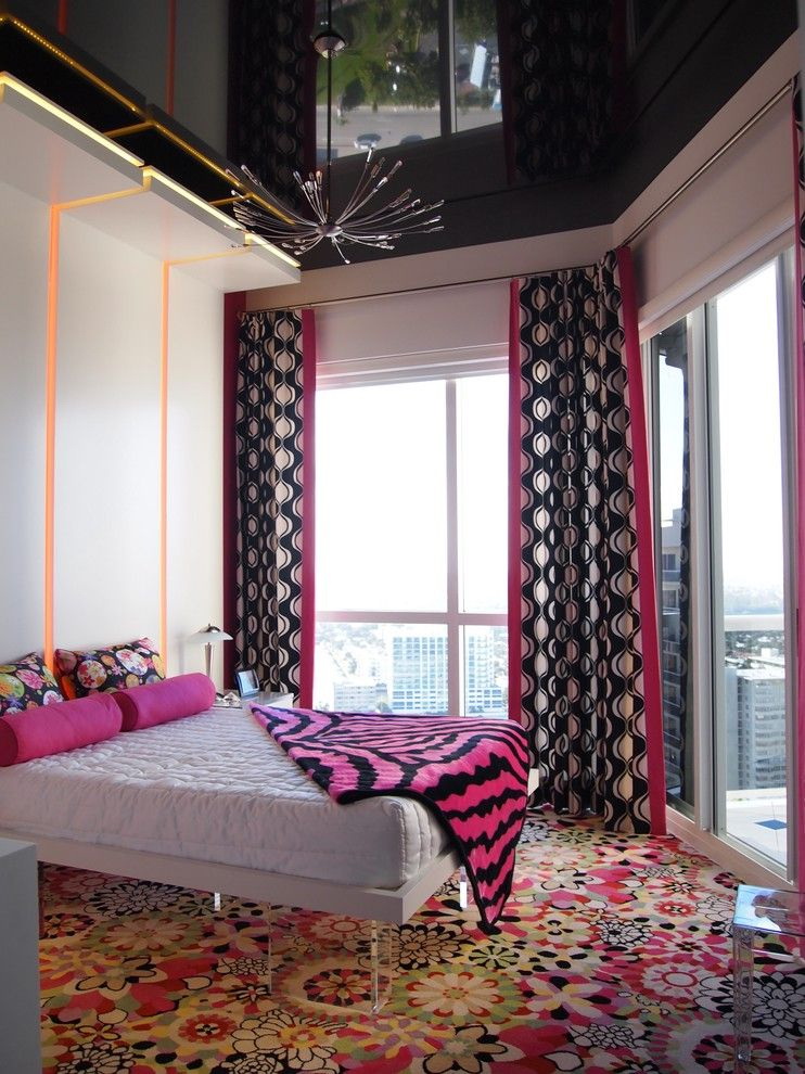 นักออกแบบชอบที่จะใช้ ในห้องนอน แสงสองประเภท: อเมริกันหรือยุโรป ระบบอเมริกันเกี่ยวข้องกับสปอตไลท์จำนวนมากกำกับในทิศทางต่าง ๆ โดยไม่มีโคมระย้าส่วนกลาง สไตล์ยุโรป - โคมระย้ากลางหลักบนเพดานและแสงเพิ่มเติม