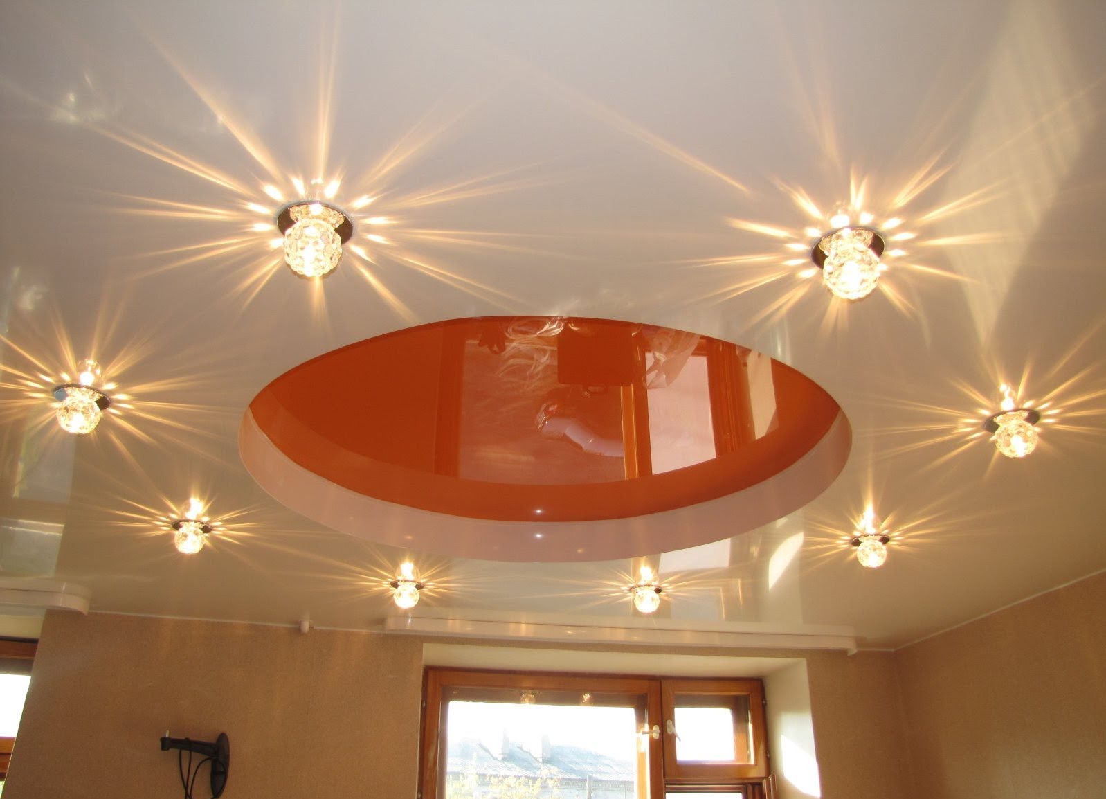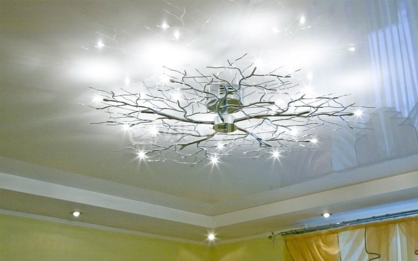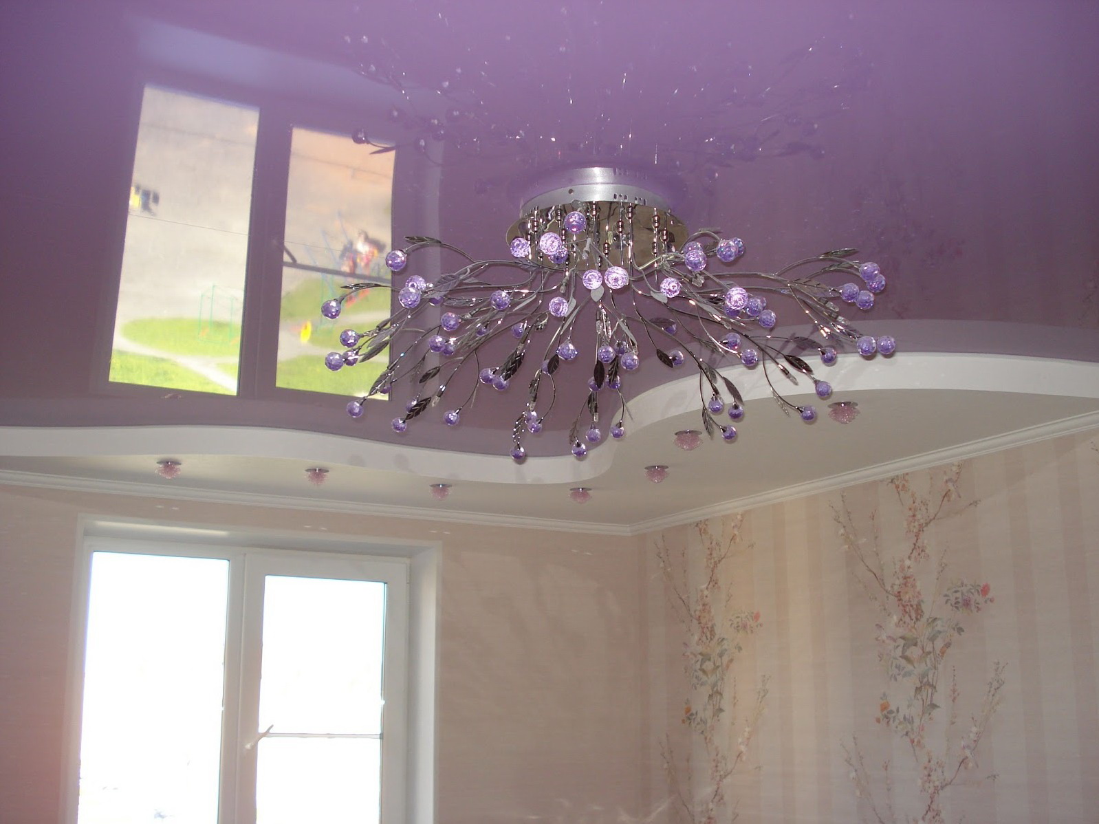 ตัวเลือกแสงที่พบได้ทั่วไปและน่าสนใจที่สุดสำหรับเพดานยืด - ตอบสนองความต้องการทั้งหมดที่กำหนดไว้ในโคมไฟ เครื่องแก้วคริสตัลกระจายแสงอย่างสวยงามด้วยความช่วยเหลือขององค์ประกอบเหลี่ยมเพชรพลอย นอกจากนี้องค์ประกอบคริสตัลสะท้อนแสงและไฮไลท์ "เล่น" สะท้อนบนผืนผ้าใบ