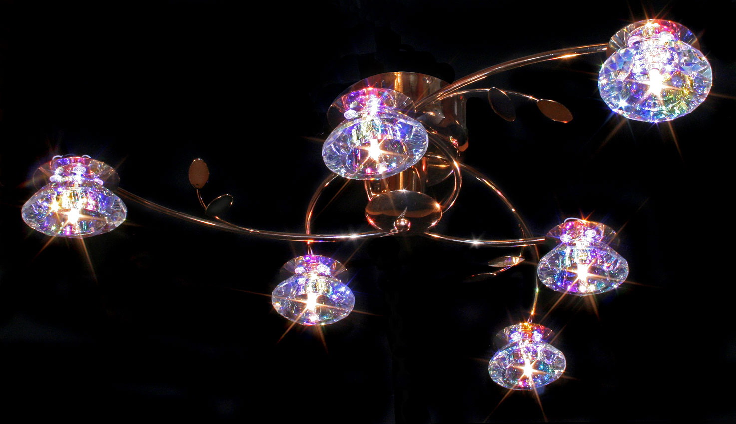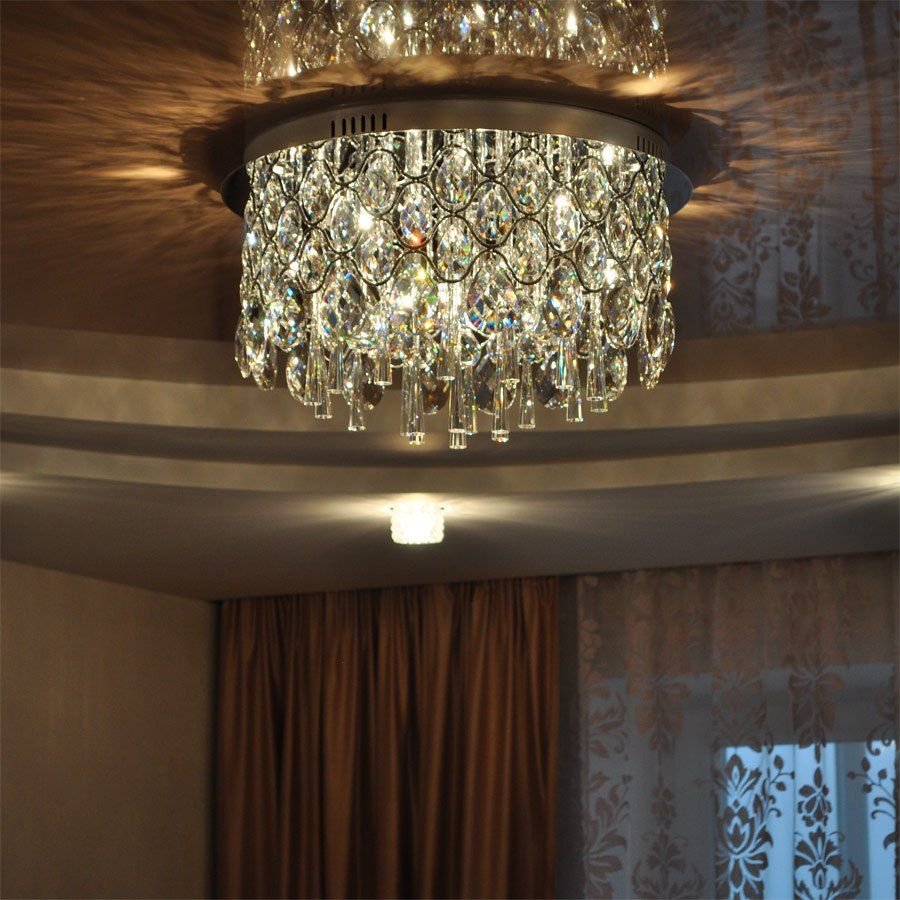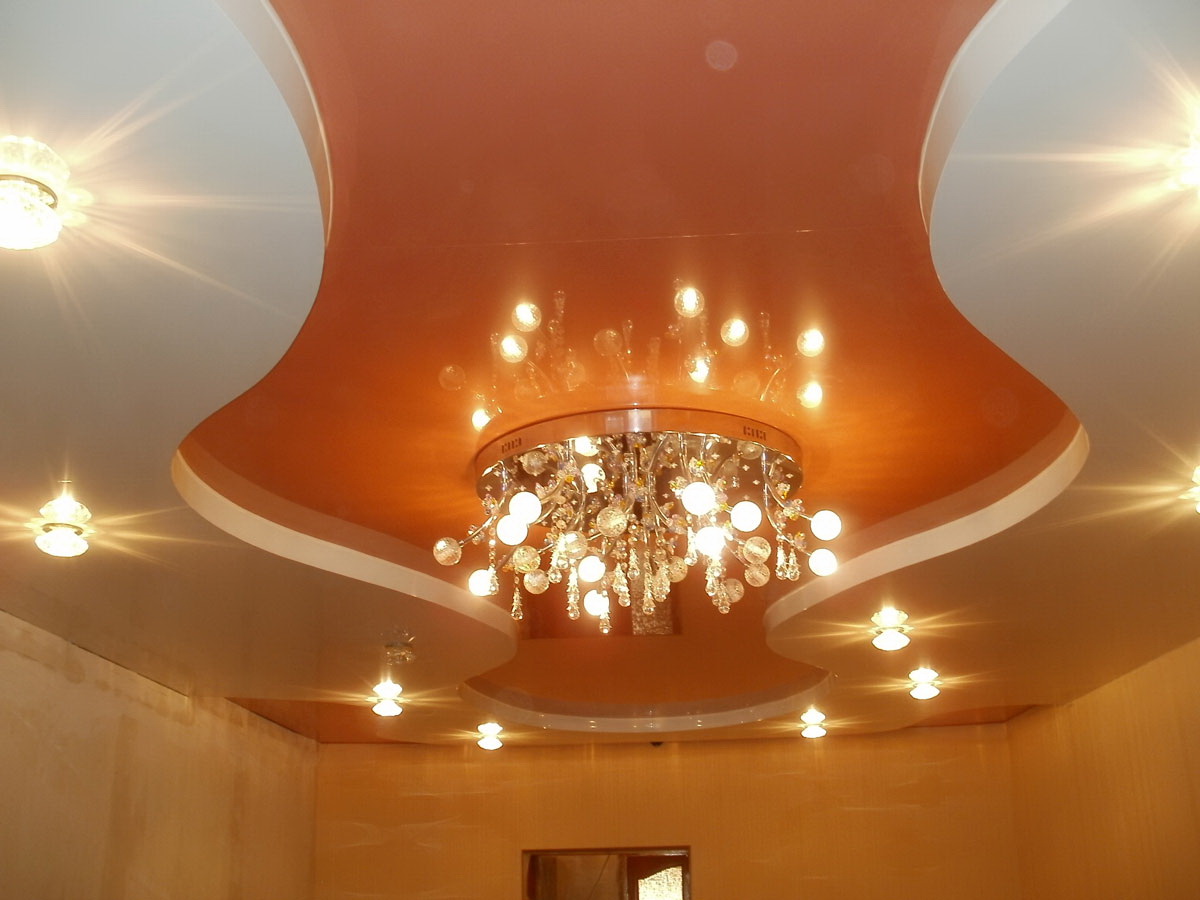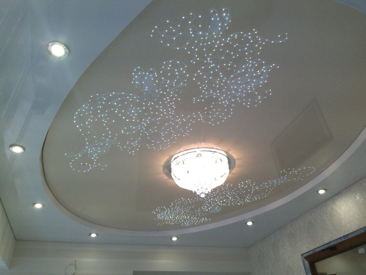 ตัวเลือกแสงที่พบได้ทั่วไปและน่าสนใจที่สุดสำหรับเพดานยืด - ตอบสนองความต้องการทั้งหมดที่กำหนดไว้ในโคมไฟ เครื่องแก้วคริสตัลกระจายแสงอย่างสวยงามด้วยความช่วยเหลือขององค์ประกอบเหลี่ยมเพชรพลอย นอกจากนี้องค์ประกอบคริสตัลสะท้อนแสงและไฮไลท์ "เล่น" สะท้อนบนผืนผ้าใบ