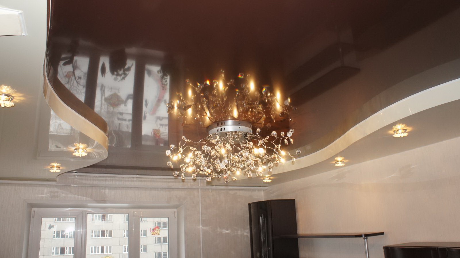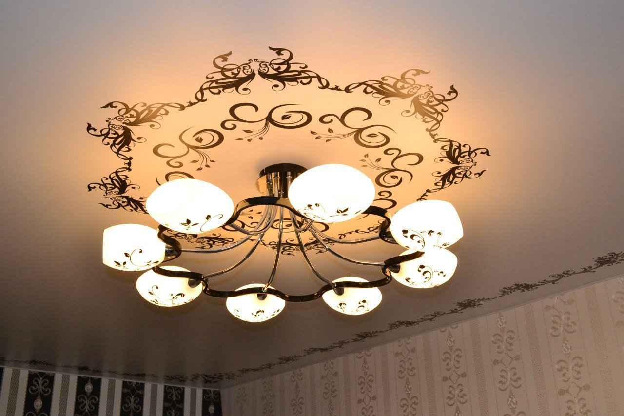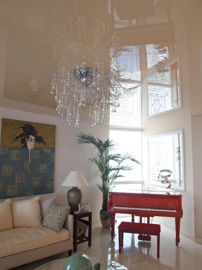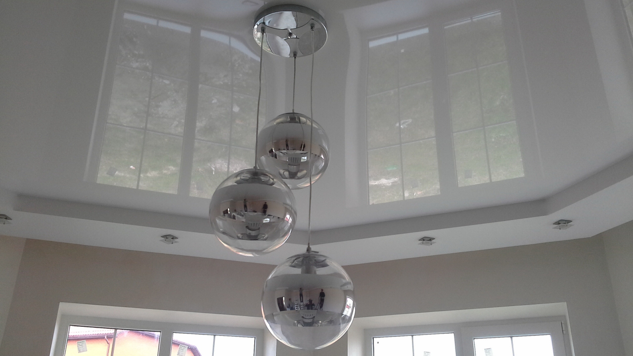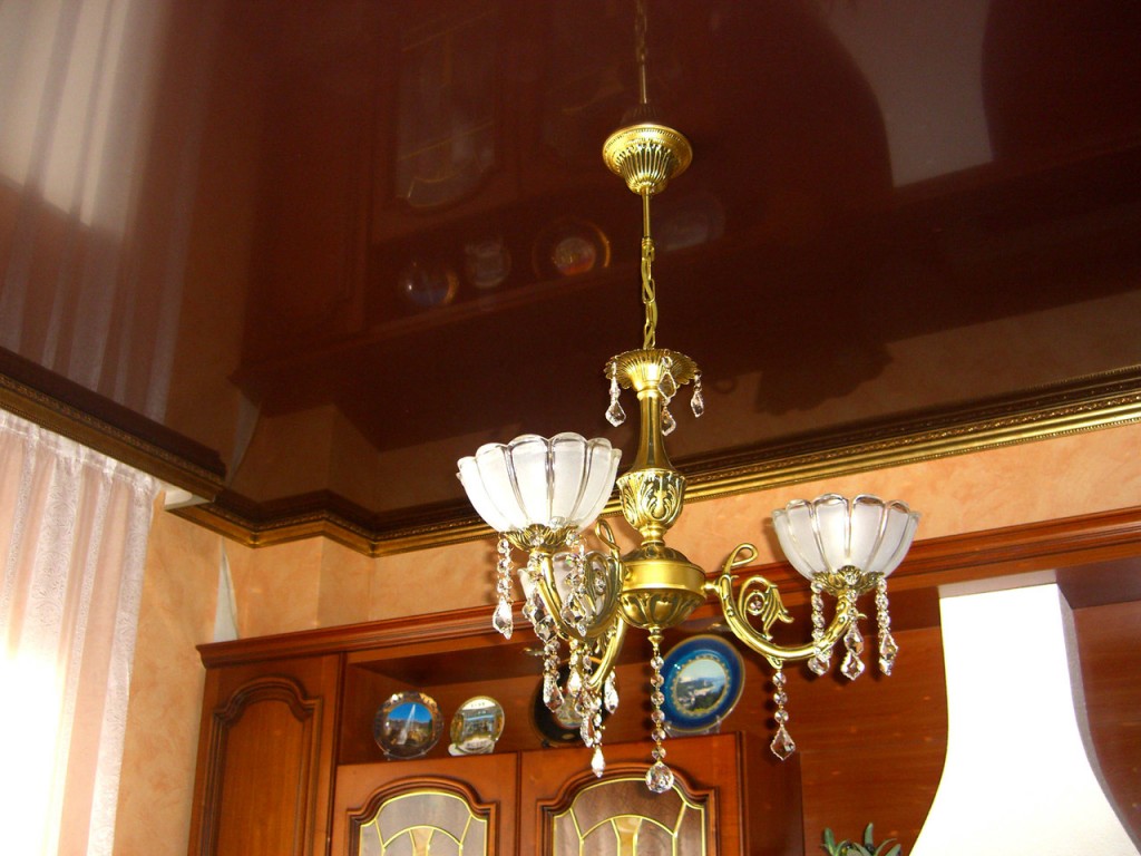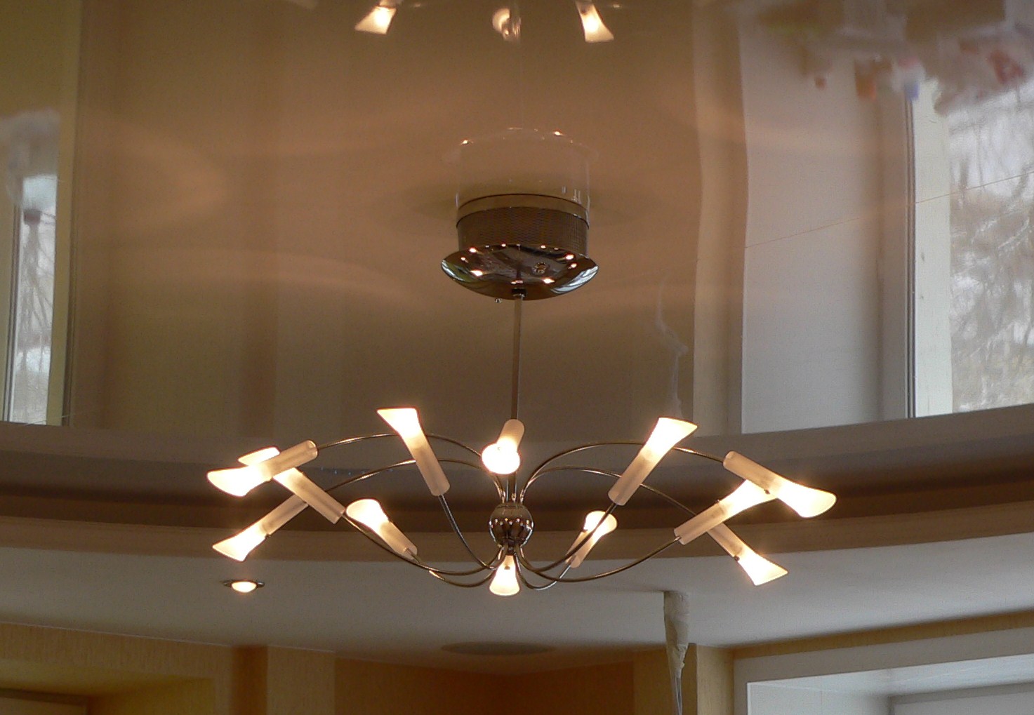 ส่วนบนของโคมระย้าและเพดานก็ควรจะ "สวยงาม" นี่เป็นสิ่งสำคัญเพราะในพื้นผิวมันวาวของผืนผ้าใบสำหรับการยืดเพดานส่วนนี้จะถูกสะท้อนออกมา ไม่มีสายไฟหรือส่วนอื่น ๆ ทำให้เสียลักษณะภาพของผลิตภัณฑ์