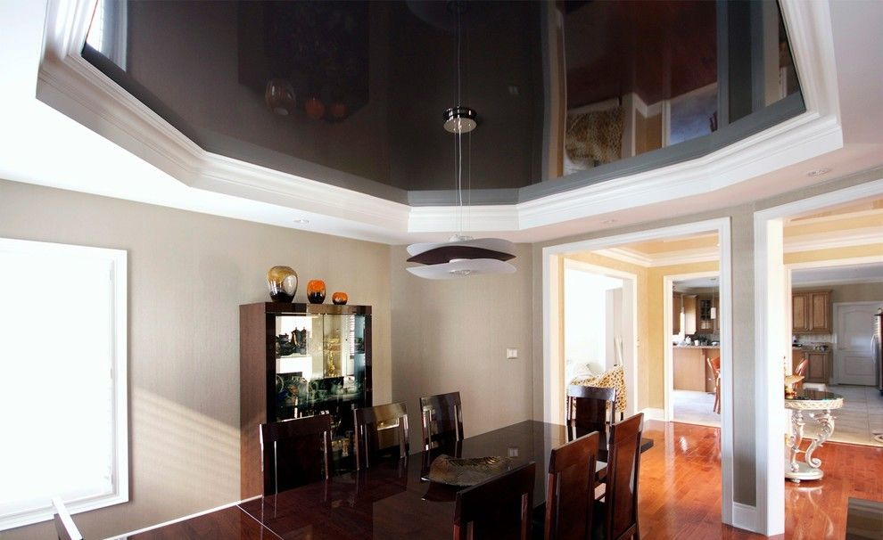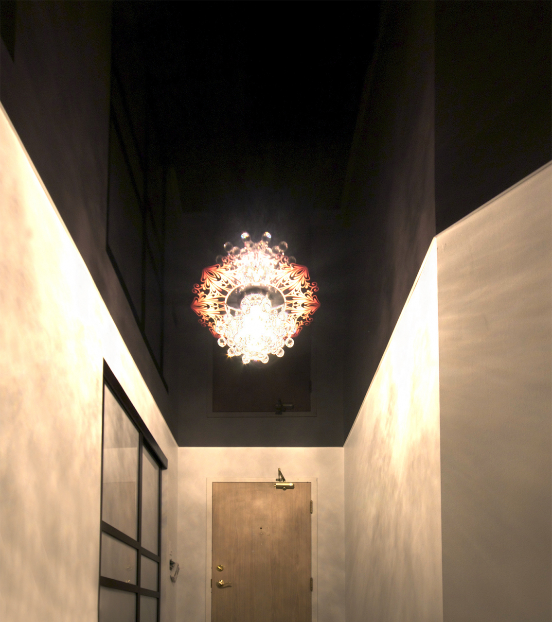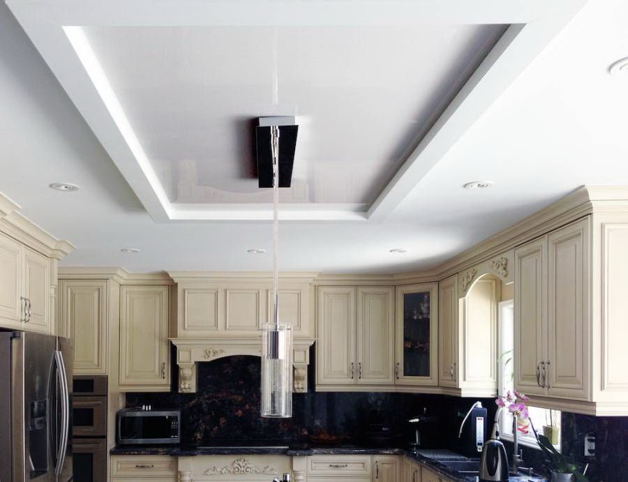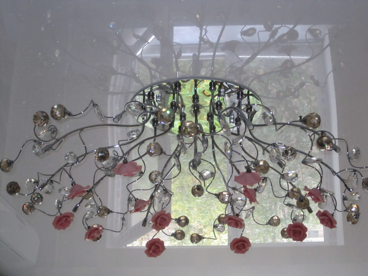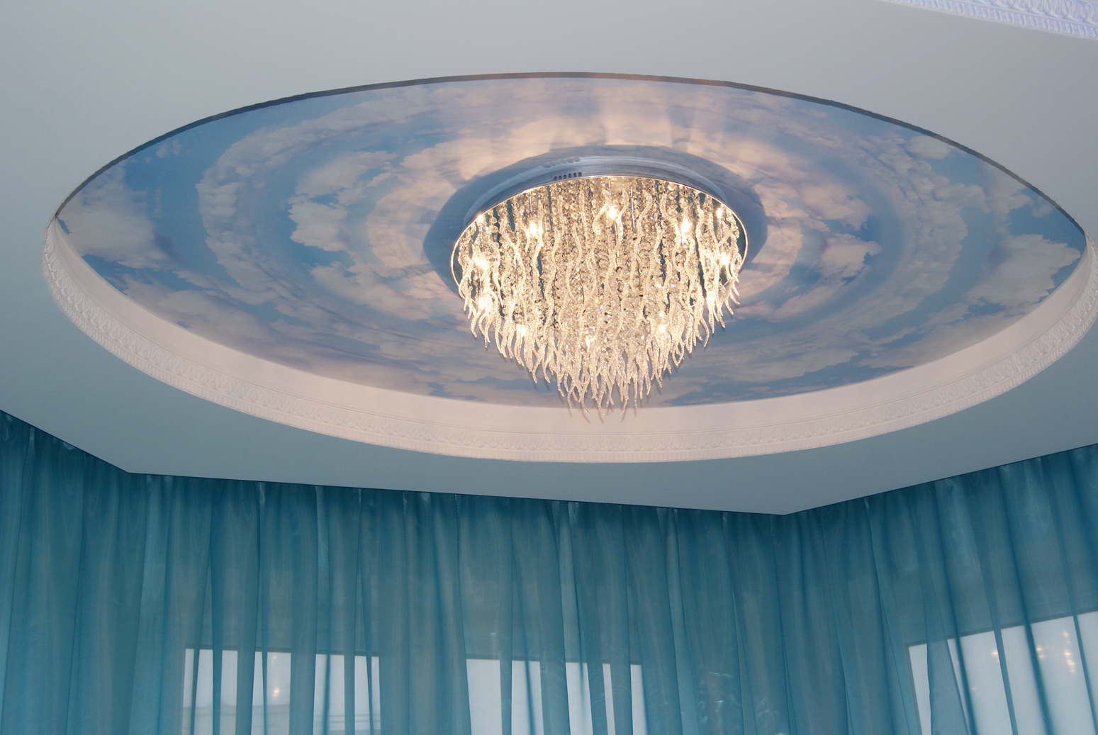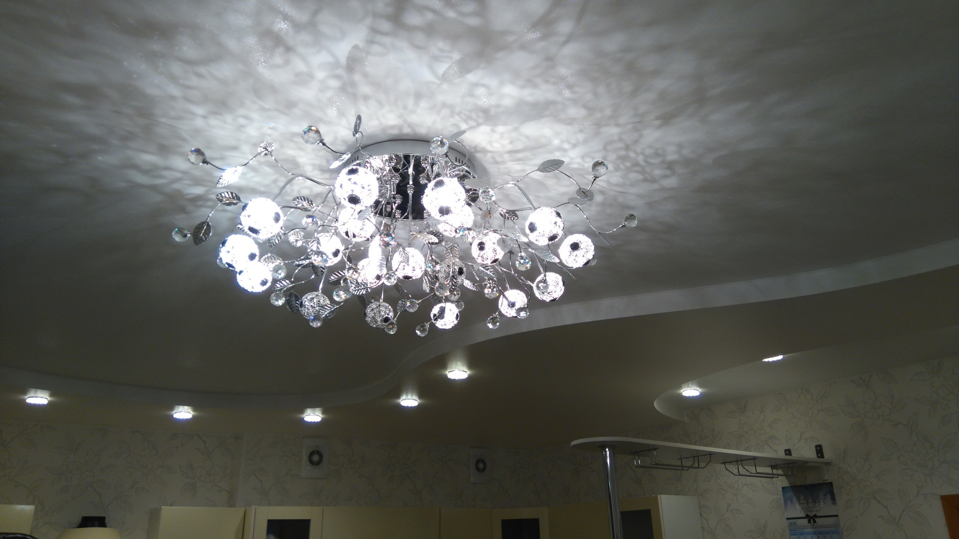 ส่วนบนของโคมระย้าและเพดานก็ควรจะ "สวยงาม" นี่เป็นสิ่งสำคัญเพราะในพื้นผิวมันวาวของผืนผ้าใบสำหรับการยืดเพดานส่วนนี้จะถูกสะท้อนออกมา ไม่มีสายไฟหรือส่วนอื่น ๆ ทำให้เสียลักษณะภาพของผลิตภัณฑ์