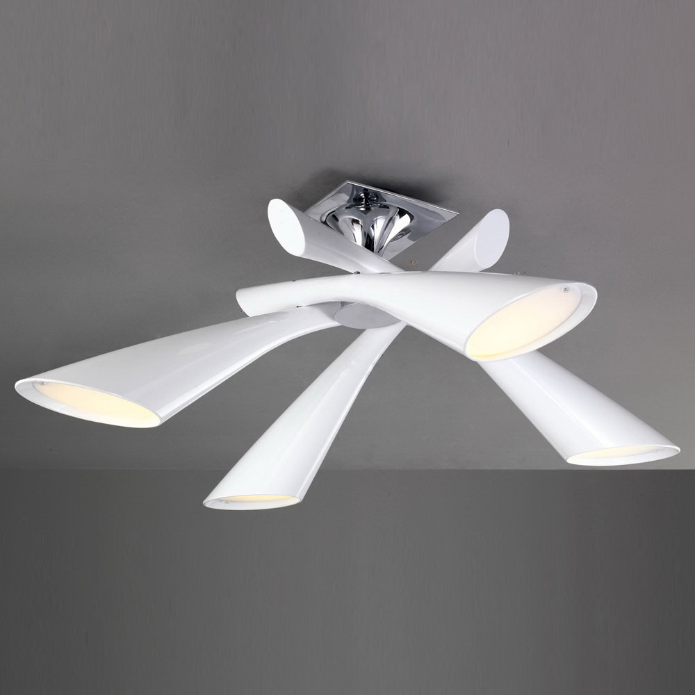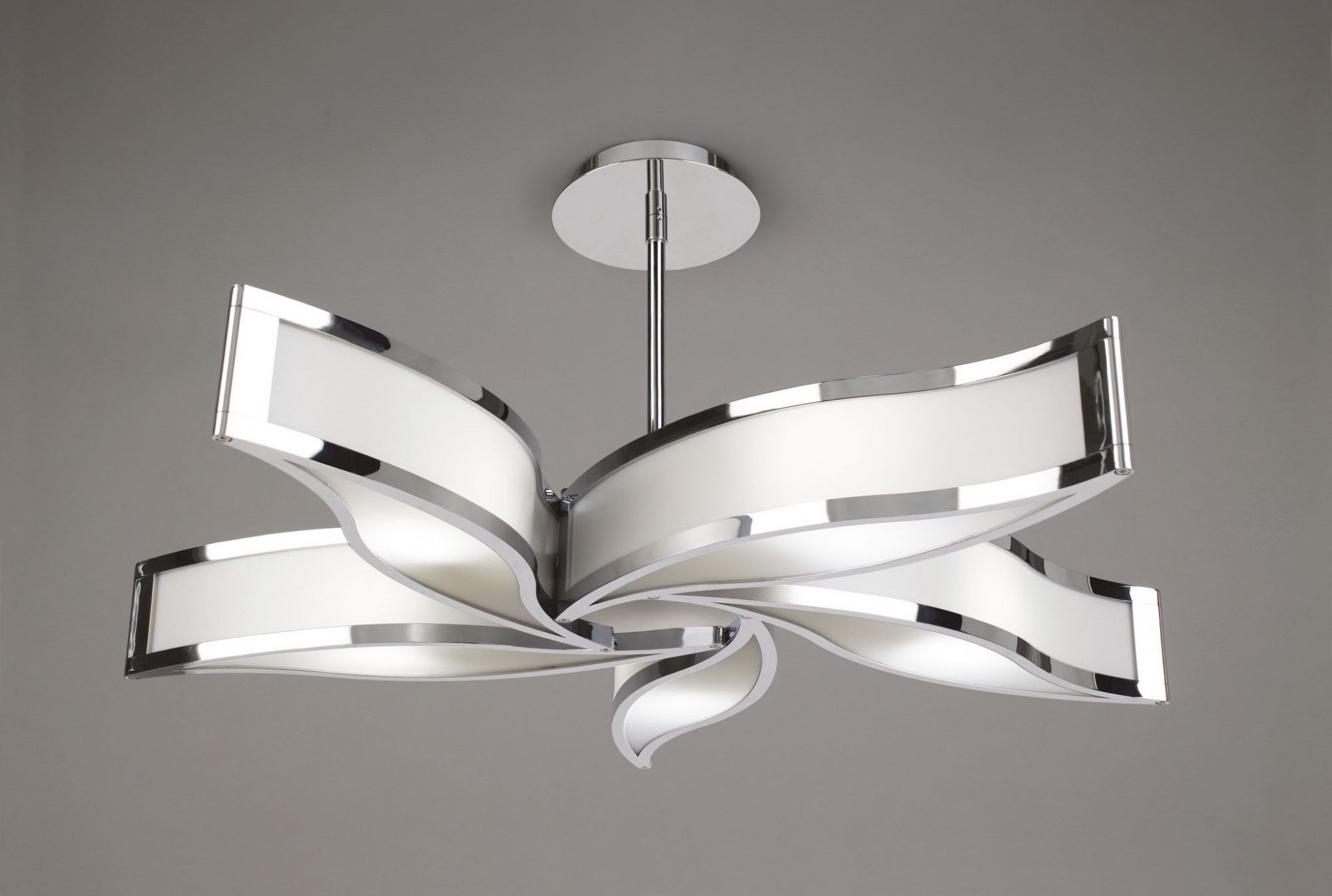 - ตามแนวนอน ติดตั้งในห้องที่มีเพดานต่ำ (สูงถึง 3 เมตร) เส้นผ่านศูนย์กลางของผลิตภัณฑ์ดังกล่าวไม่ควรเกิน 1 ม. สามารถมีรูปแบบที่แตกต่างกันโดยสิ้นเชิงเช่นรูปแบบหลายแทร็กคลาสสิกพร้อมการจัดเรียงเพดานบน "สาขา" และโซลูชันการออกแบบที่น่าสนใจ ข้อดีของหลอดดังกล่าวจึงให้แสงสว่างทั่วทั้งห้องอย่างสมบูรณ์แบบเนื่องจากระยะทางที่สม่ำเสมอของหลอดไฟจากศูนย์กลาง