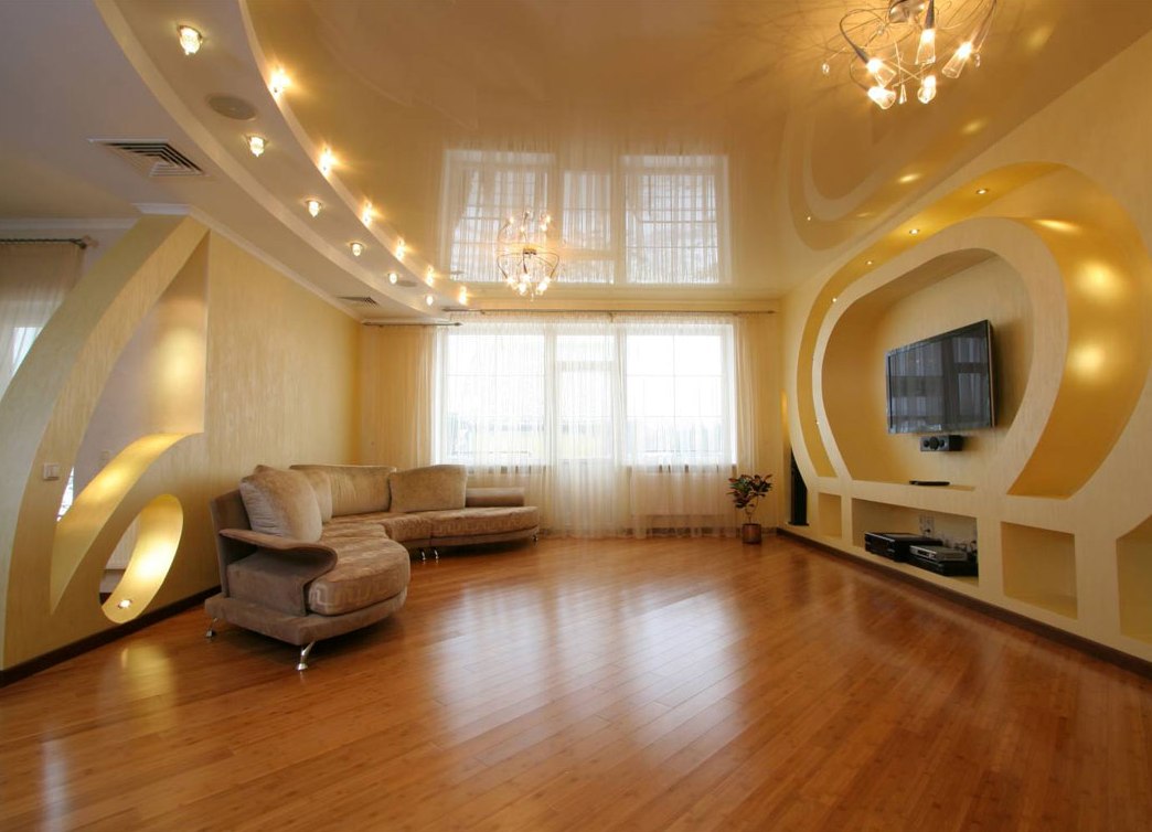 สิ่งที่ต้องเลือกสำหรับห้องนั่งเล่น: แตร, โคมไฟเพดานหรือจาน?