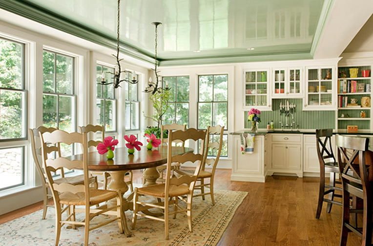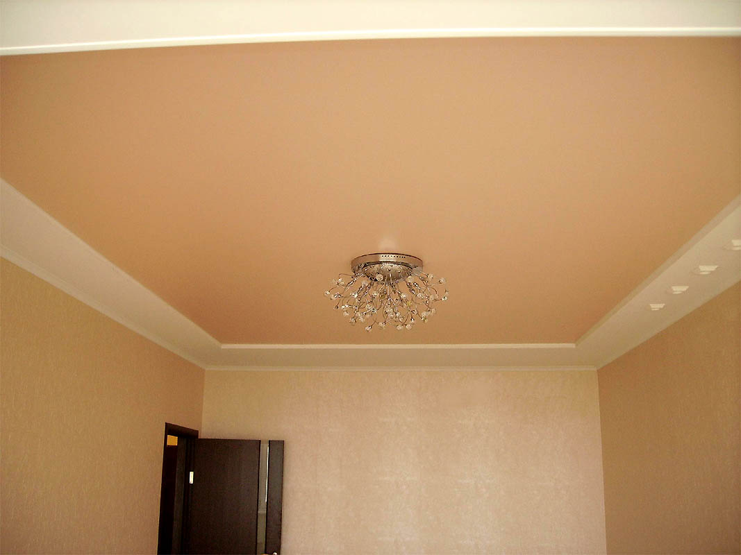 - พีช, ทราย, "แชมเปญ", สีเบจ, ทั้งหมดนี้จะทำให้ห้องสะดวกสบายและอบอุ่น สีของเพดานนี้มีมากขึ้นเพื่อการพักผ่อนและพักผ่อนดังนั้นผลิตภัณฑ์เหล่านี้จะถูกเลือกสำหรับห้องนอนหรือห้องนั่งเล่น