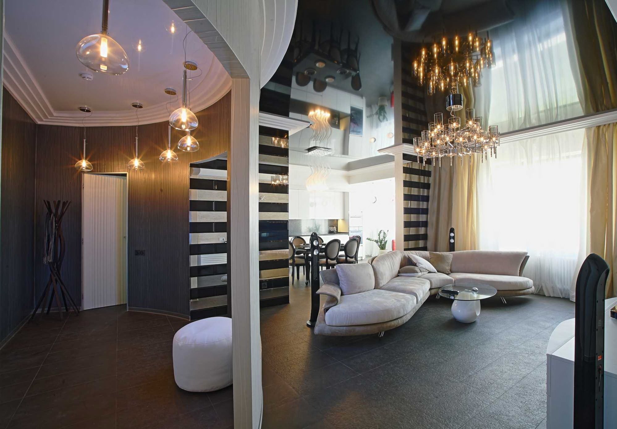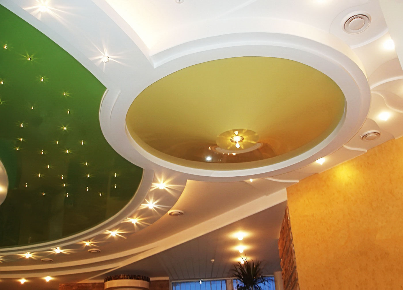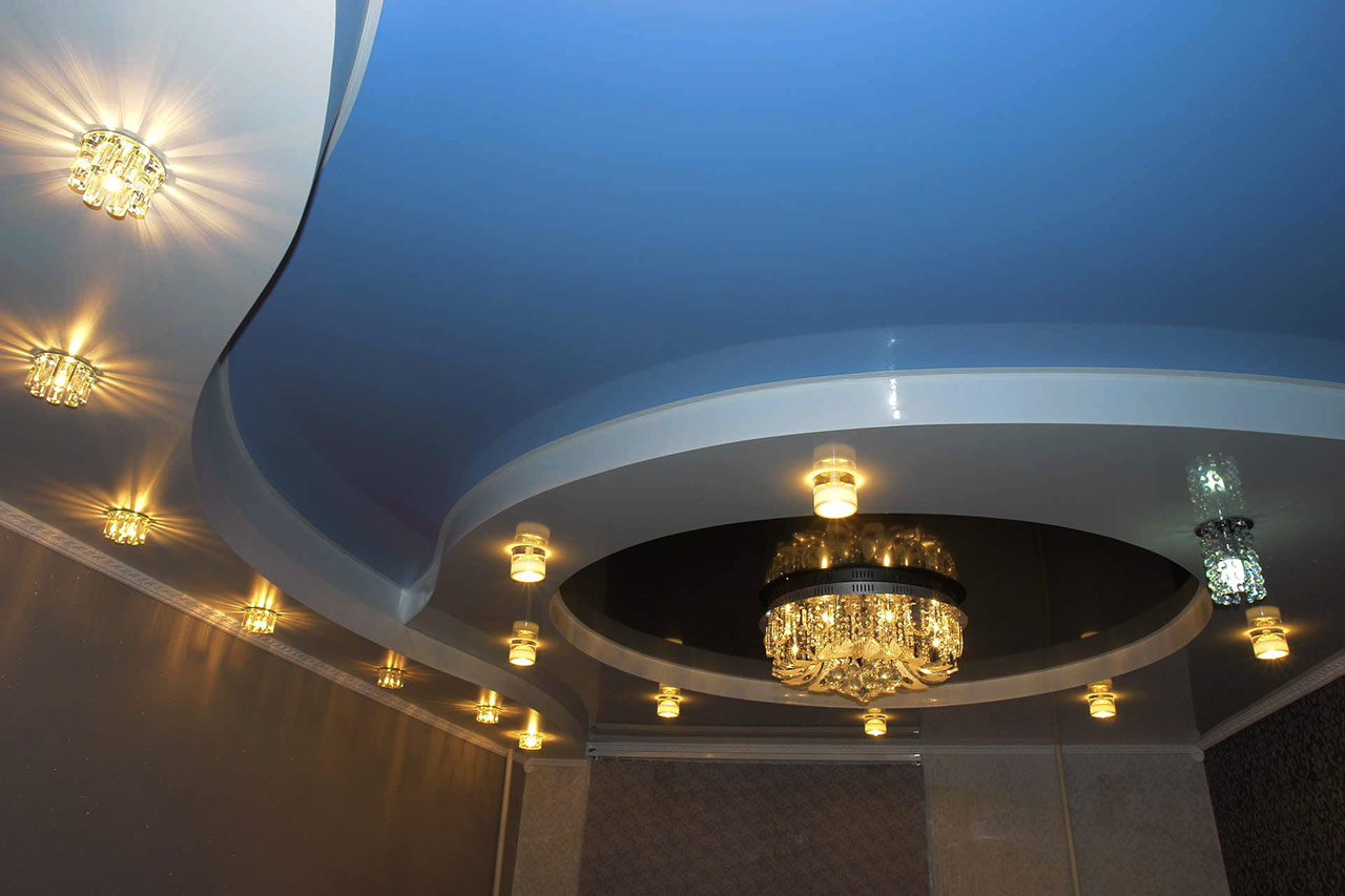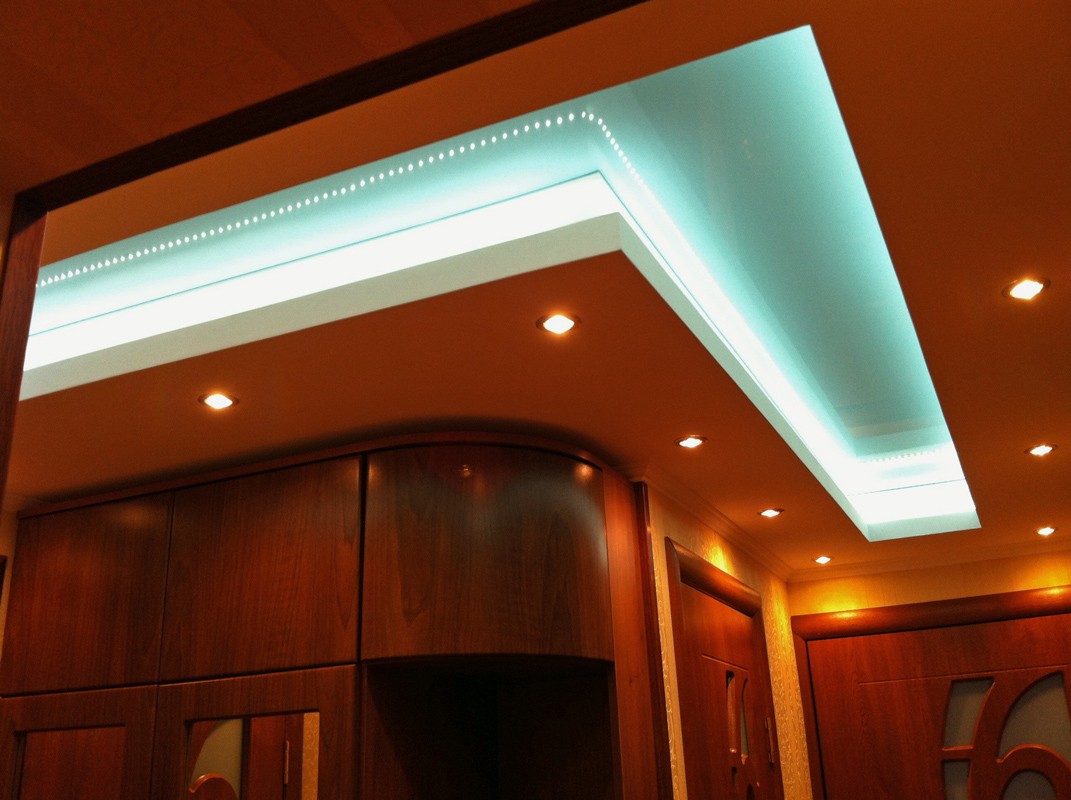 ขอแนะนำให้ติดตั้งไฟส่องสว่างโดยรอบในห้องโถง ยกตัวอย่างเช่นโคมไฟระย้าที่มีเฉดสีเย็นจัด นอกจากนี้คุณยังสามารถติดตั้งโคมไฟระย้าด้วยแสงที่สูงขึ้นถึงแม้ว่าในสถานการณ์เช่นนี้คุณควรพิจารณาว่าเพดานยืดไม่ทนต่อการสัมผัสกับอุณหภูมิสูงและเสื่อมสภาพ ตัวสะท้อนแสงสามารถแก้ไขปัญหานี้ได้หรือการใช้หลอดพลังงานต่ำ เทคนิคทั้งหมดเหล่านี้จะนำเสนอห้องโถงด้วยแสงที่นุ่มนวลน่ารื่นรมย์และป้องกันไม่ให้เอฟเฟกต์ของแสงไฟที่ "แวววาว"