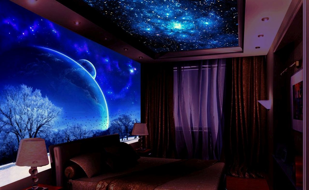 - ท้องฟ้าเต็มไปด้วยดวงดาว เทคโนโลยีที่ทันสมัยได้รับอนุญาตให้สร้างในห้องนอนคุณสามารถนำเสนอท้องฟ้าเต็มไปด้วยดวงดาวซึ่งมองเห็นจะไม่แตกต่างจากปัจจุบัน มันควรจะเป็นพาหะในใจว่ามันจะต้องทำล่วงหน้าก่อนที่จะมีการติดตั้งเพดานยืด หลายคนเติมเต็มท้องฟ้าที่เต็มไปด้วยดวงดาวด้วยเครื่องฉายเลเซอร์ที่ให้คุณสร้างเอฟเฟกต์อื่น ๆ ในห้องนอนได้เช่นดาวหางที่บินได้ ความหรูหรานี้ไม่ถูกดังนั้นคุณสามารถใช้ผลิตภัณฑ์ราคาถูกกว่าประเภทนี้"ดาว" ถูกนำไปใช้บนผืนผ้าใบสีเข้มของเพดานยืดด้วยความช่วยเหลือของสีเรืองแสง ในระหว่างวันพวกเขาจะมองไม่เห็นและในเวลากลางคืนพวกเขาให้ภาพที่สวยงามมาก