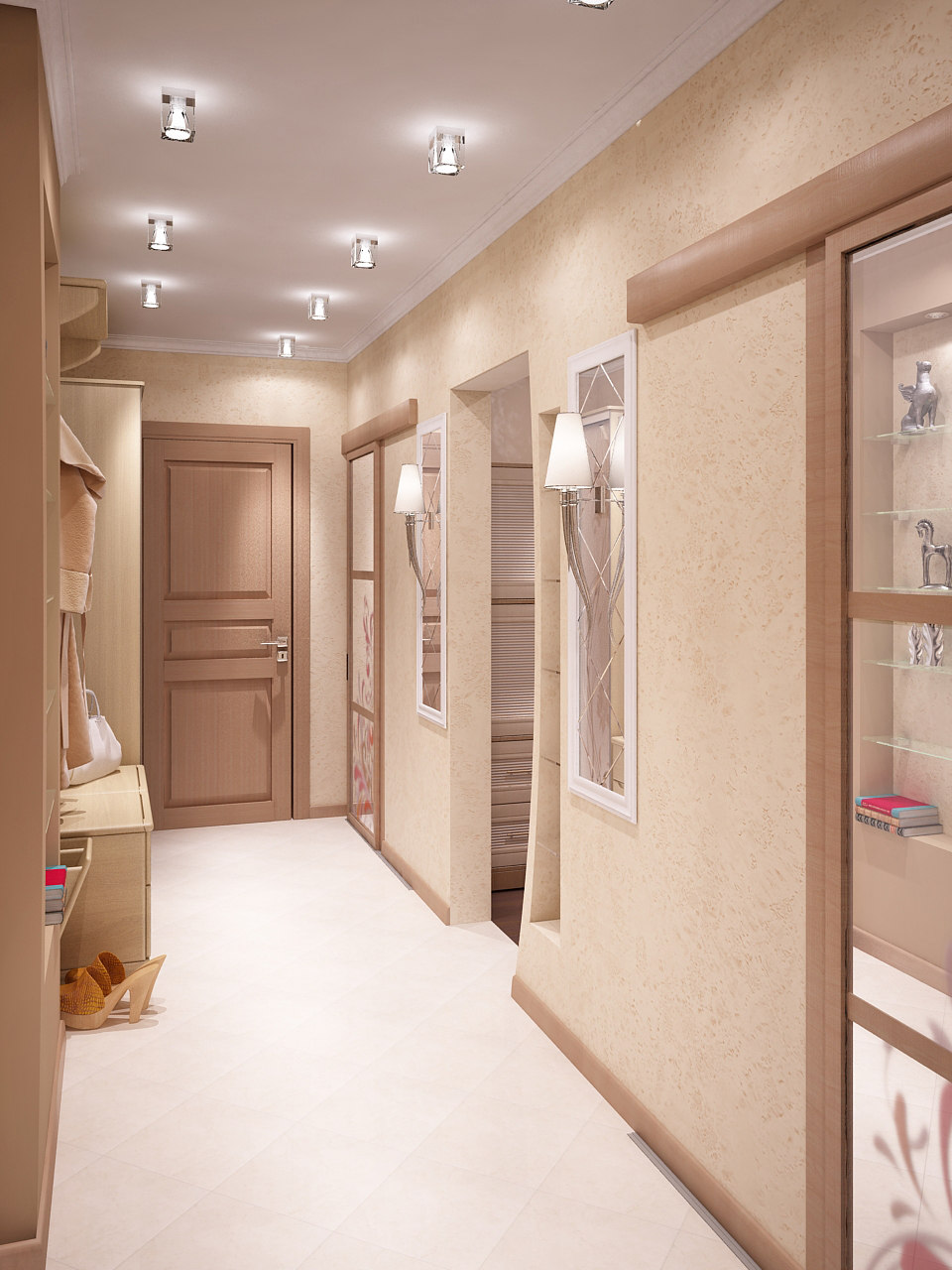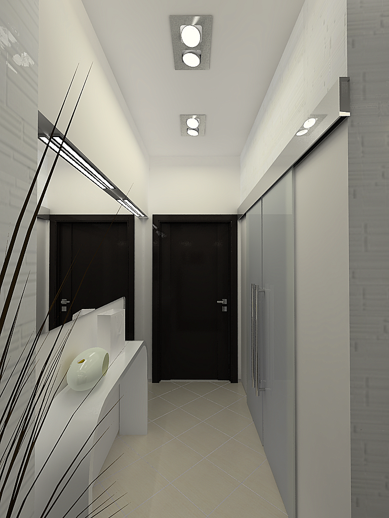 ตามกฎแล้วทางเดินในอพาร์ทเมนท์มันเป็นห้องแคบยาว แสงสว่างควรช่วยให้มองเห็นห้องได้กว้างขึ้นและ "แก้ไข" ข้อบกพร่องด้านภาพ ในกรณีของเพดานที่ถูกระงับผลกระทบนี้สามารถทำได้ด้วยความช่วยเหลือของสปอตไลท์ในตัว คุณต้องมีพวกเขาในลักษณะนี้: 2-3 เหนือประตูทางเข้าอพาร์ทเมนต์และทีละห้องตลอดความยาวของห้อง