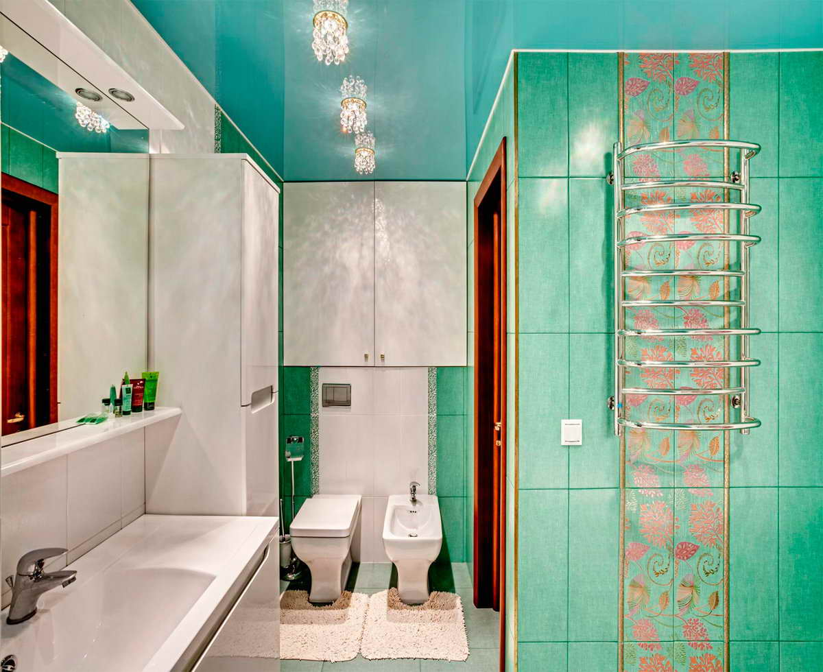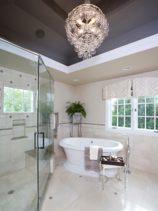นอกจากนี้ควรติดตั้งโคมไฟระย้าขนาดเล็กในห้องน้ำ แสงสปอตเป็นตัวเลือกที่ดีที่สุดสำหรับห้องนี้ สิ่งเหล่านี้อาจเป็นเครื่องใช้ที่อยู่เหนือศีรษะไฟยื่นออกมาหรือไฟในตัว นอกจากนี้สำหรับไฟส่องเฉพาะจุดเพื่อไม่ให้ละลายฝ้าเพดานจำเป็นต้องใช้วงแหวนระบายความร้อนพิเศษ