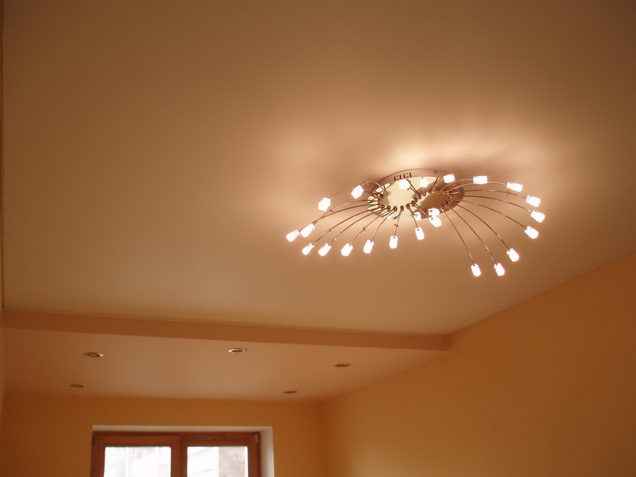 ขึ้นอยู่กับขนาดของห้อง ตัวอย่างเช่นหากพื้นที่ของห้องมีขนาดตั้งแต่ 9 ถึง 12 ตารางเมตรมันเหมาะสมที่จะติดตั้งโคมระย้าคลาสสิกหนึ่งตัวที่กึ่งกลาง หากสามารถติดตั้งไฟส่องสว่างได้การติดตั้งจะใช้เวลาไม่นาน เพียงแค่ต้องจำไว้ว่าบาง บริษัท ที่มีส่วนร่วมในการติดตั้งผ้าใบฟรีติดตั้งติดตั้งไฟหนึ่ง