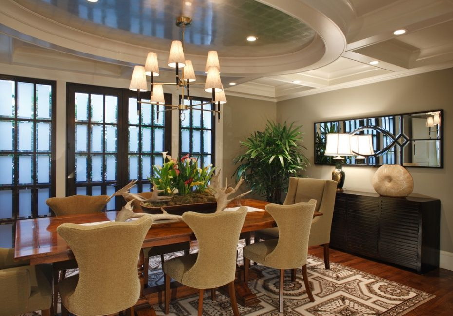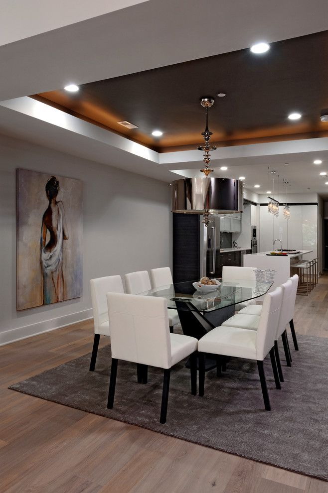 แต่มีห้องที่มีรูปร่างที่ซับซ้อนหรือผิดปกติแล้วจะทำอย่างไร? สำหรับพวกเขาคุณสามารถใช้กลยุทธ์ต่อไปนี้: แบ่งห้องออกเป็นโซนใช้งานได้และแยกพวกมันออกโดยใช้แหล่งกำเนิดแสง ตัวอย่างเช่นหากเป็นห้องรับประทานอาหารที่รวมกับห้องครัวโคมระย้าหนึ่งชิ้นจะอยู่เหนือโต๊ะอาหารและอีกห้องหนึ่งอยู่เหนือพื้นที่ทำงานของห้องครัวโดยตรง