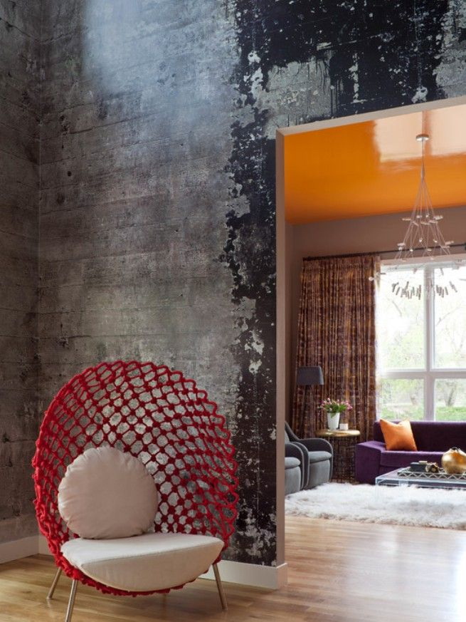 ทุกสิ่งสามารถใช้เป็นวัสดุสำหรับสไตล์นี้และไม่มีข้อ จำกัด ในโทนสี สำหรับสไตล์ลอฟท์เฉดสีเมทัลลิคสีเทาและสีเข้มนั้นเหมาะสมกว่าในขณะที่ศิลปะป๊อปรักเฉดสีที่หลากหลายของโคมไฟเพดานร่วมกับกรอบโลหะ