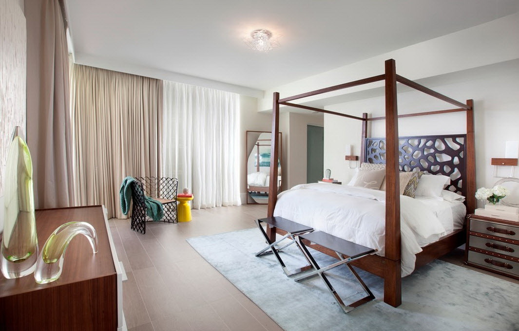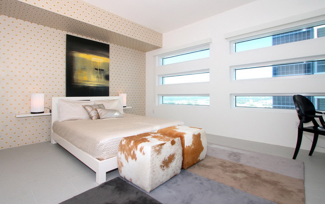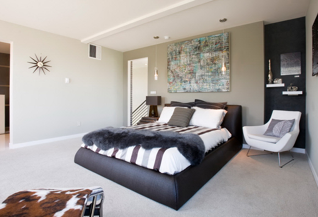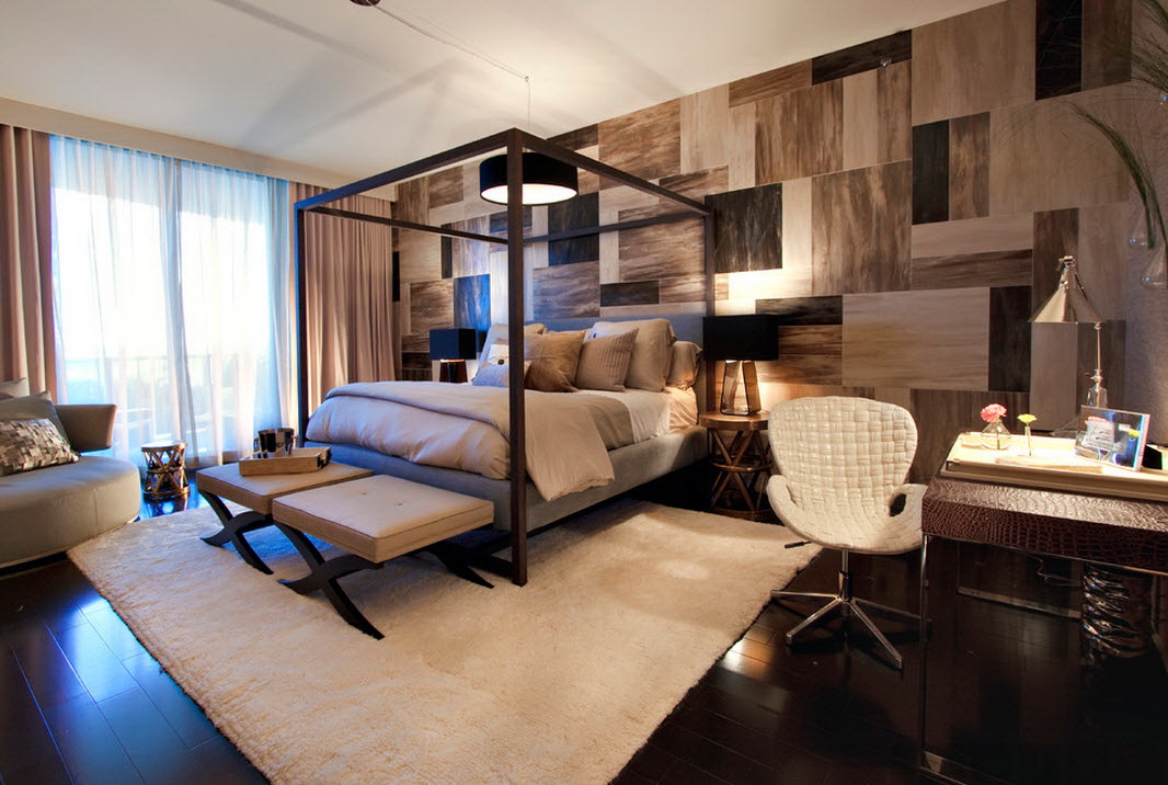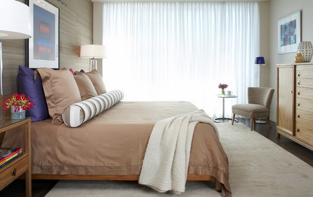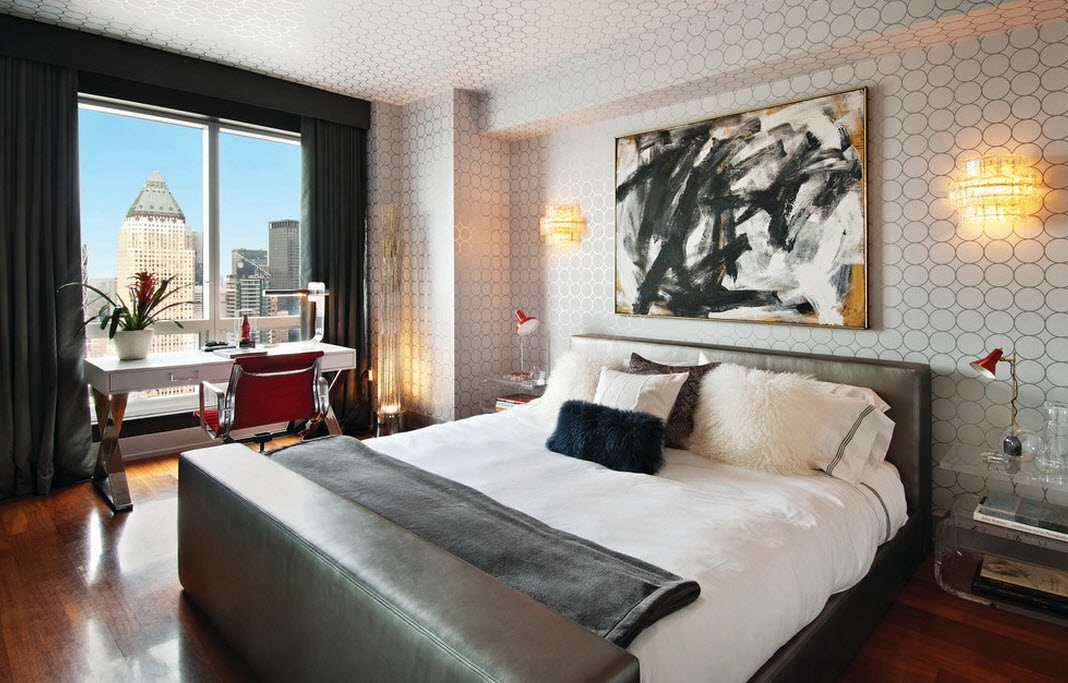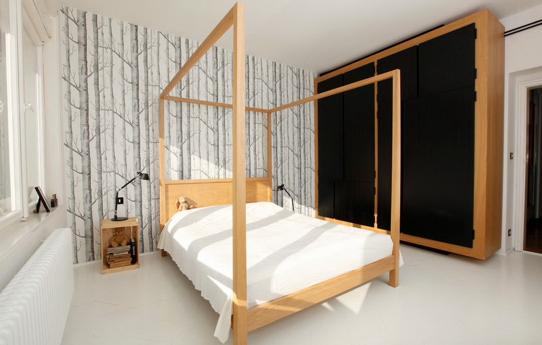 ภาพจิตรกรรมฝาผนังหรือลวดลายบนผนังข้างเตียงก็ดูงดงามเช่นกัน แต่ห้องนอนควรจะผ่อนคลายไม่น่ารำคาญ ดังนั้นจึงเป็นการดีกว่าที่จะไม่ใช้รุ่นที่มีลายนูนลวดลายหรือพิมพ์ออกมา