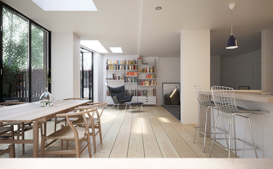 รูปแบบในสไตล์ที่ทันสมัยมีการติดตั้งในห้องใดก็ได้จากห้องนั่งเล่นไป ห้องอาบน้ำมีเพียงคุณเท่านั้นที่ต้องคำนึงถึงขนาดของห้องเพราะสไตล์นี้ต้องใช้แสงที่ดี
