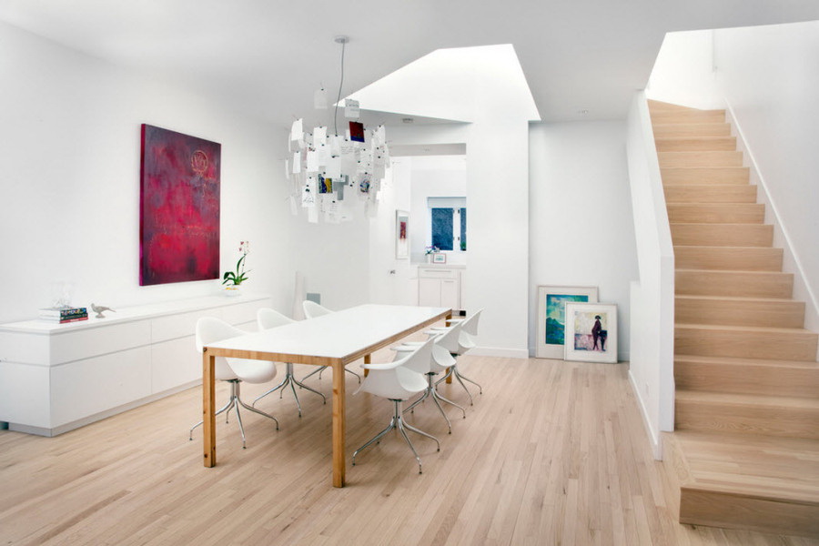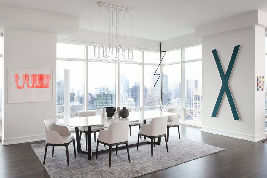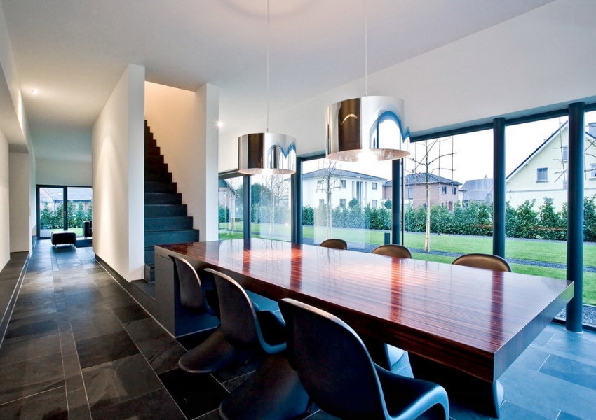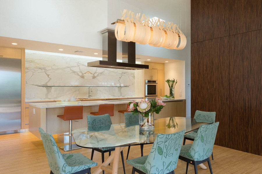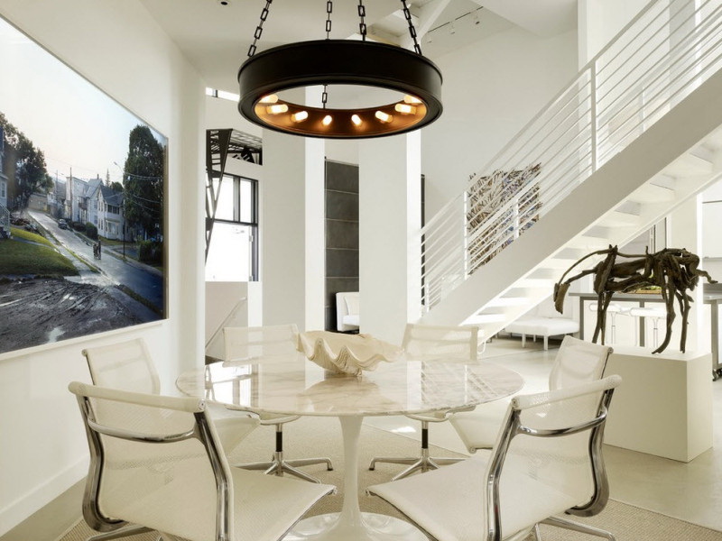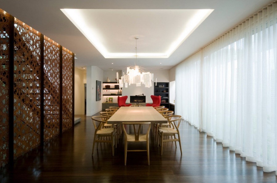 แสงสว่างในยุคปัจจุบันมีความสำคัญอย่างยิ่ง เขาสามารถรวมและเพิ่มความสะดวกสบายให้กับบรรยากาศนี้ทำให้มันอุ่นขึ้น มันเป็นเรื่องปกติมากสำหรับความทันสมัยด้วยชิ้นส่วนที่ลดลงเช่นนี้สำหรับห้องรับประทานอาหารเมื่อมันเป็นไปได้ที่จะลดระดับให้ต่ำลงด้วย lampshades คริสตัลแทรกและฝุ่นโลหะ