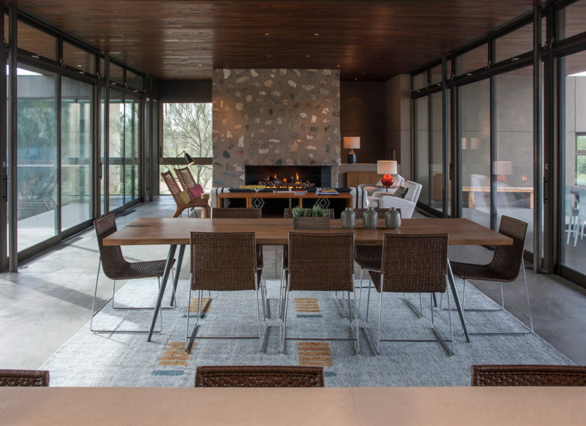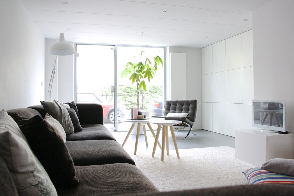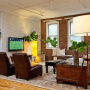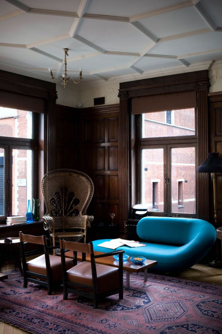 โซฟาเป็นหนังแข็งขนาดใหญ่ไม่ได้ออกแบบมาสำหรับวางในห้องนั่งเล่นตู้ที่มีชั้นวางของไม้ ค่อนข้างมากเป็นพื้นที่ว่างเปล่าที่มีกลุ่มเล็ก ๆ : โต๊ะและเก้าอี้นวมหรือโต๊ะเล็กและเก้าอี้นวมรวมทั้งโต๊ะขนาดใหญ่ในห้องอาหาร