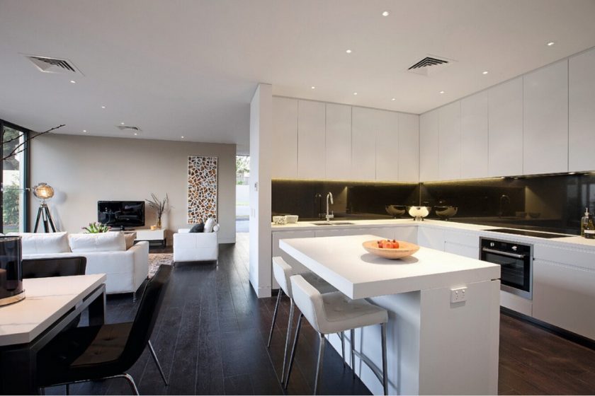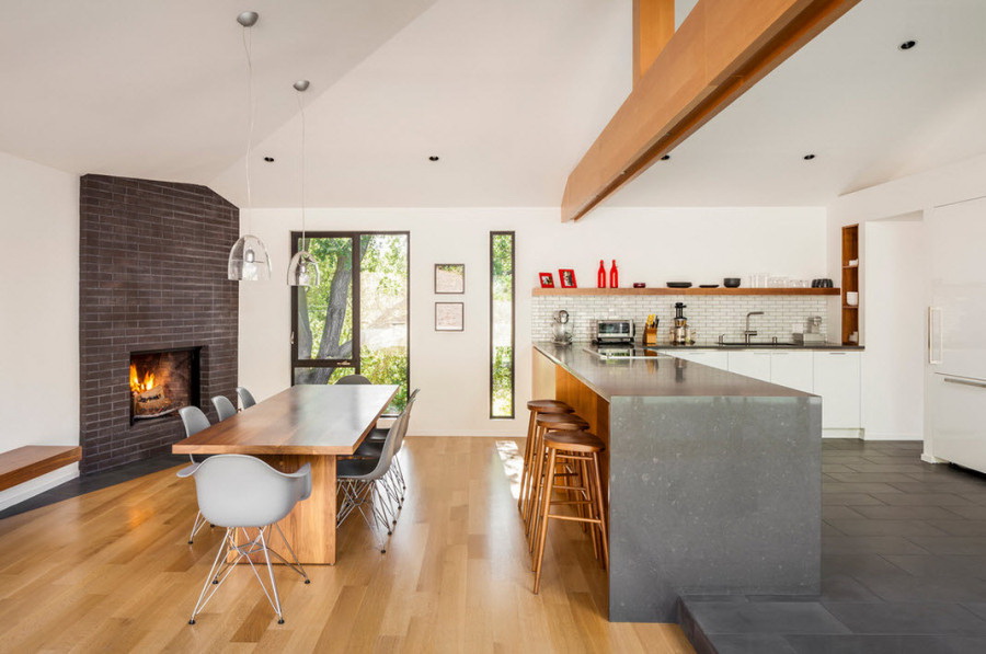 ในความทันสมัยที่ทันสมัยสถานที่กลางที่ถูกครอบครองโดยเกาะครัวครอบครองพื้นที่น้อยกว่าโต๊ะแบบดั้งเดิมทำงานได้มากขึ้น สะดวกในการจัดงานเลี้ยงต้อนรับกับเขาซึ่งแขกแต่ละคนสามารถมาทานอาหารว่างหรือเครื่องดื่มได้อย่างอิสระ