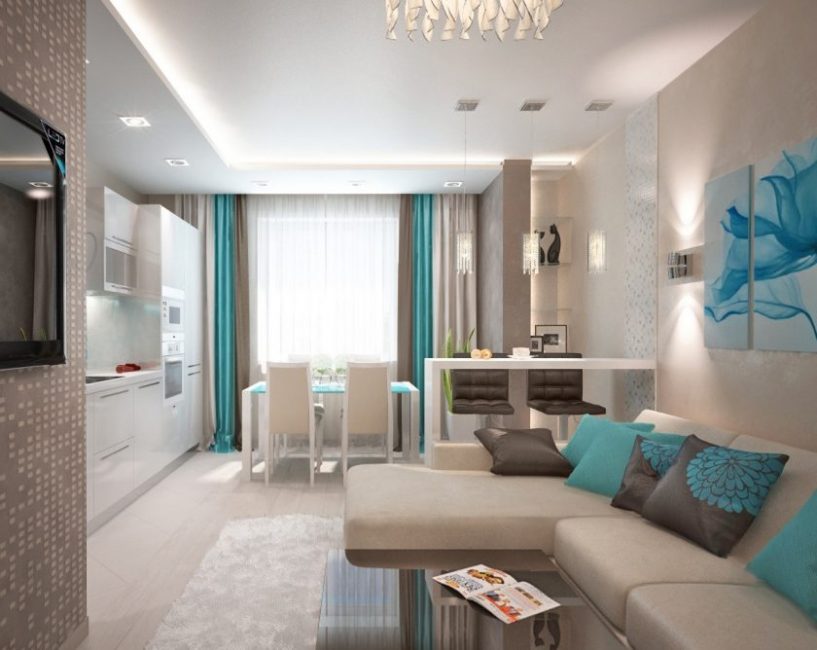 เฉดสีดังกล่าวช่วยเพิ่มห้องได้อย่างชัดเจนและมีการผสมผสานที่ยอดเยี่ยมกับการตกแต่งที่เรียบเนียน