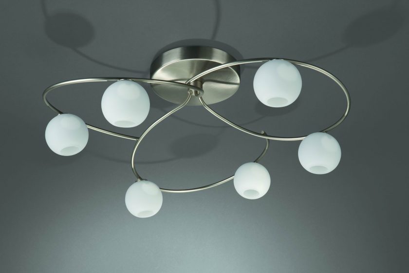 โคมระย้าสไตล์อาร์ตนูโวทั่วไปพร้อมโคมไฟที่ลงตามลำดับคุณสามารถเปลี่ยนแสงที่โต๊ะเหมาะสำหรับห้องครัว แต่ข้อสังเกตหนึ่ง: สำหรับแหล่งกำเนิดแสงสูง เพดาน.
