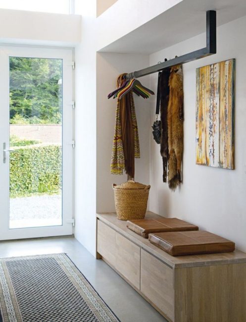 หากห้องโถงมีขนาดเล็กคุณสามารถตกแต่งตู้เสื้อผ้าด้วยเครื่องประดับหรือองค์ประกอบของพืชพรรณสัตว์ป่า รูปลักษณ์ดั้งเดิมไม่ใช่เก้าอี้หรือเก้าอี้ขนาดใหญ่ที่มีเบาะหุ้มด้วยลวดลาย ยืนขึ้น ไม้แขวนเสื้อ. เป็นที่พึงประสงค์ว่าเฟอร์นิเจอร์ทั้งหมดที่ทำจากไม้, บรอนซ์, เหล็กหล่อจะเป็นทางออกที่ดีในการออกแบบ