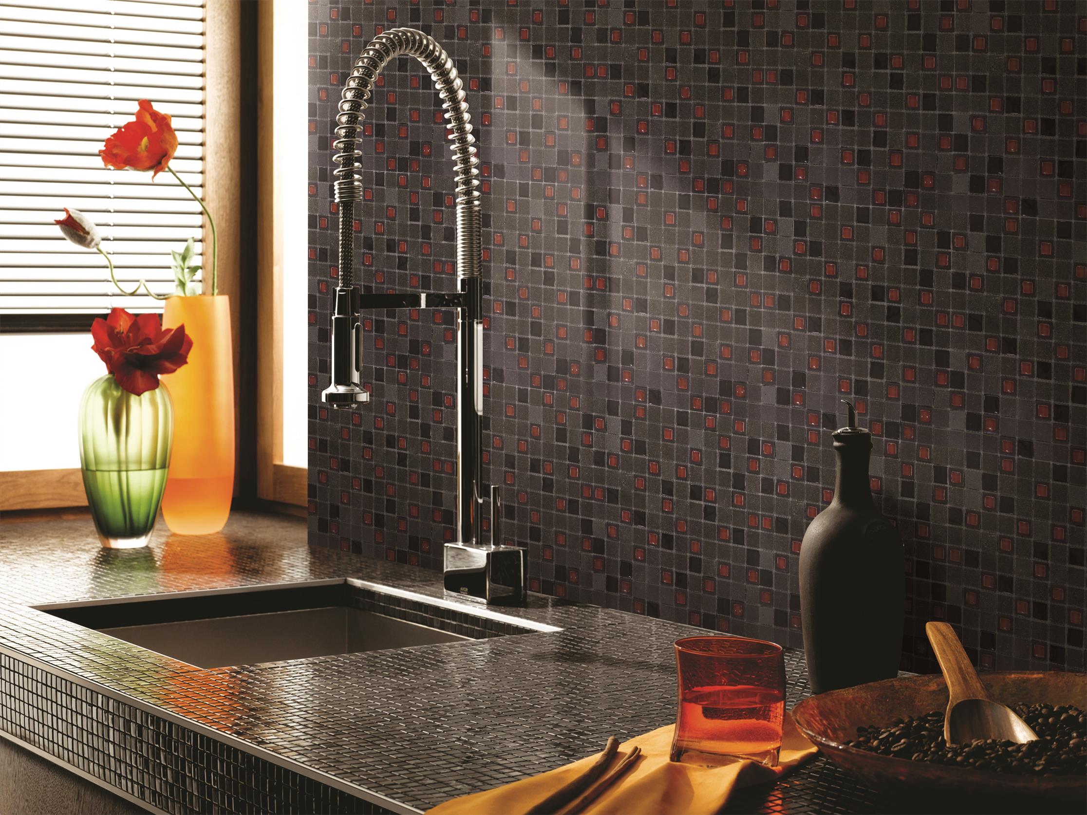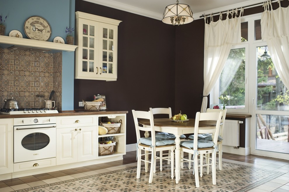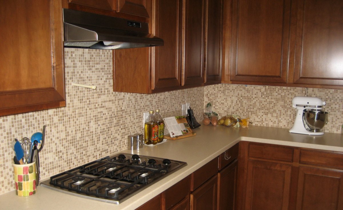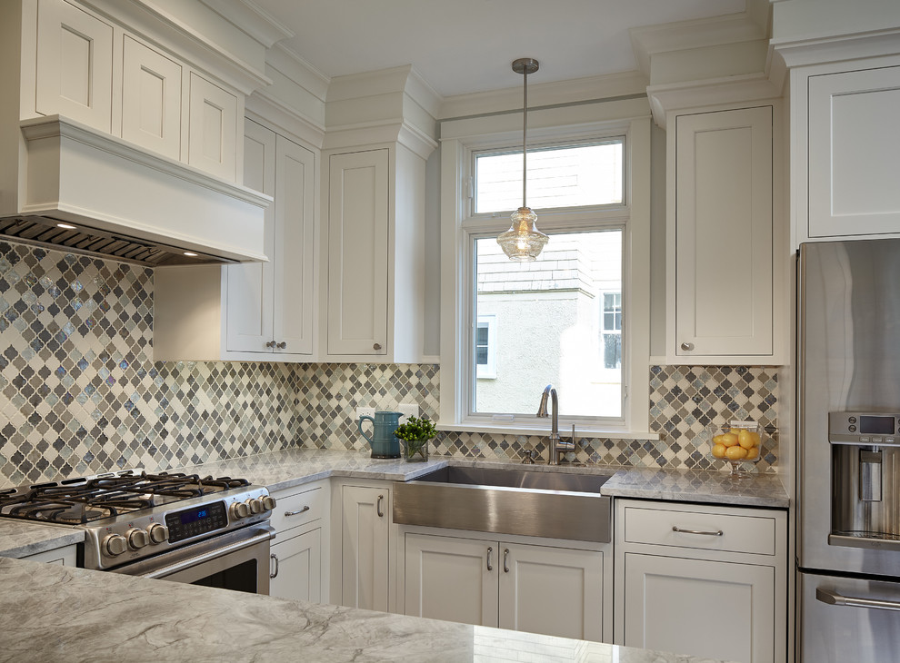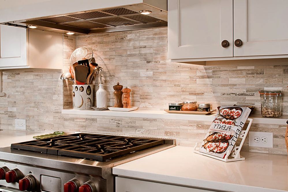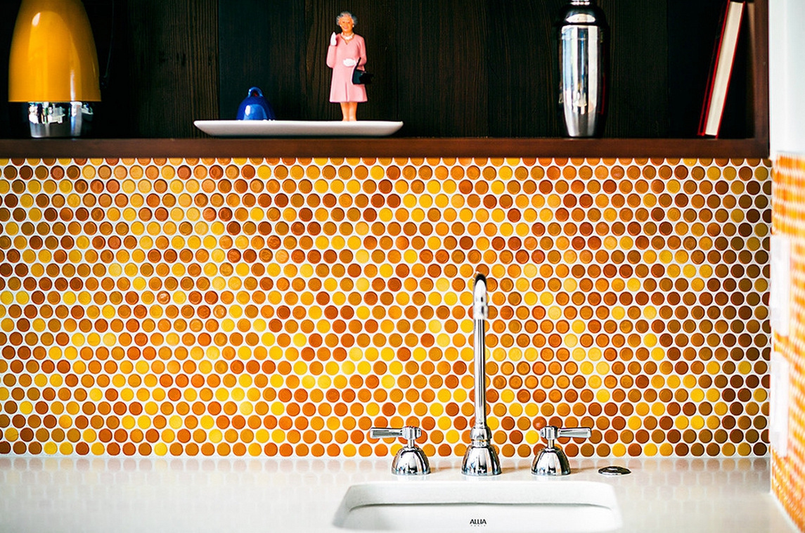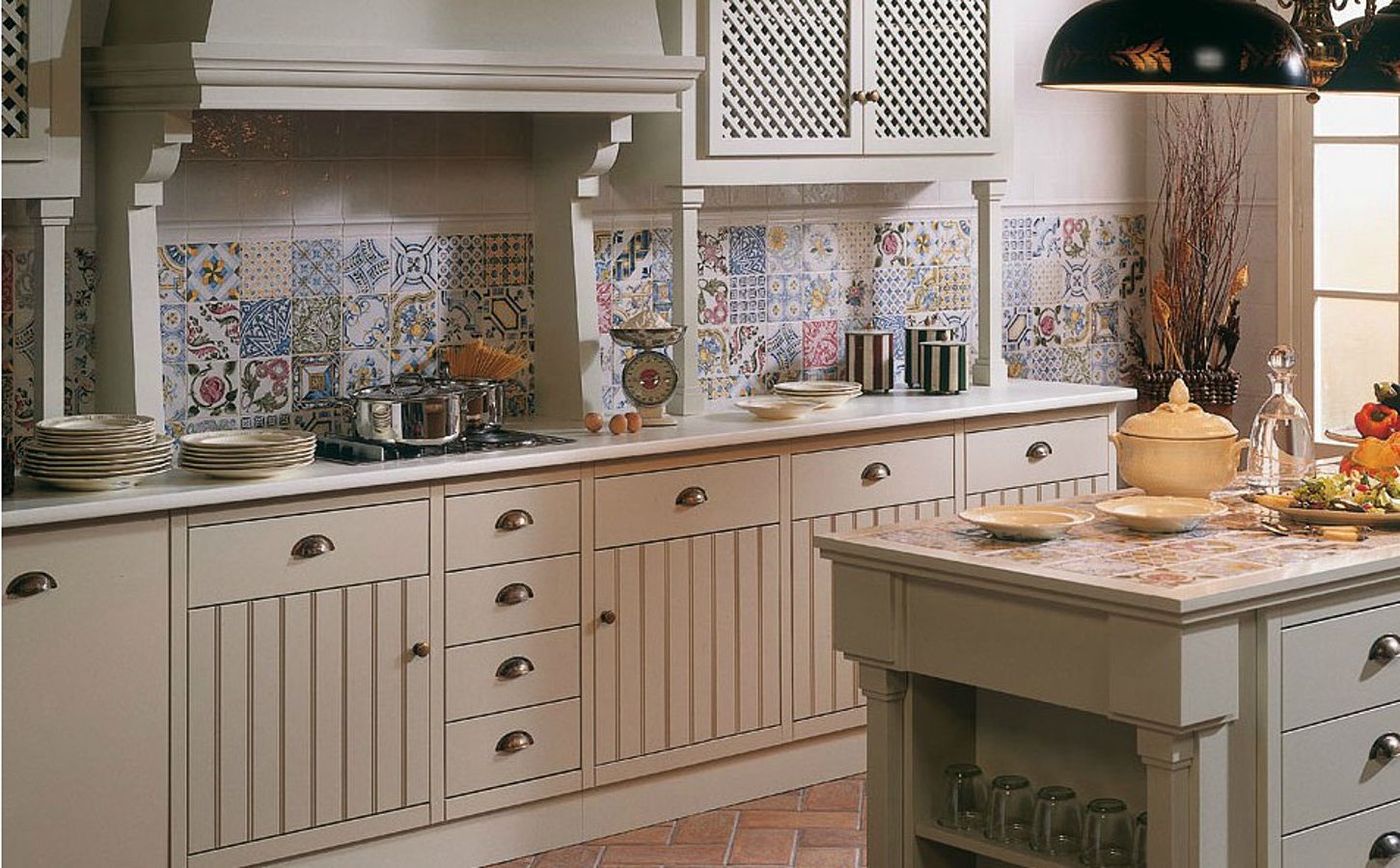 กำแพงการทำงาน ในห้องครัว เรียกว่าผ้ากันเปื้อน บริเวณนี้มีน้ำจาระบีดังนั้นจึงแนะนำให้วางกระเบื้องโมเสคผ้ากันเปื้อนออกซึ่งเป็นกระเบื้องขนาดเล็กปกติ