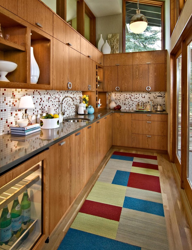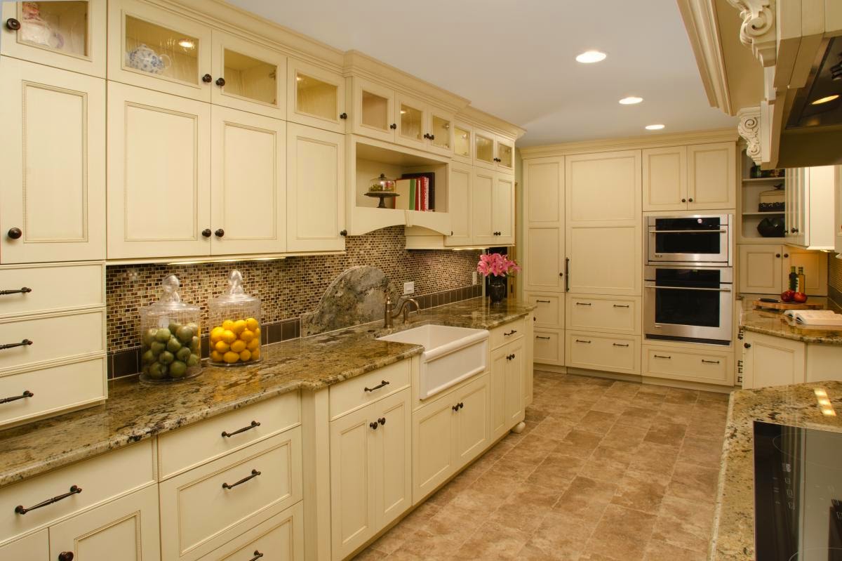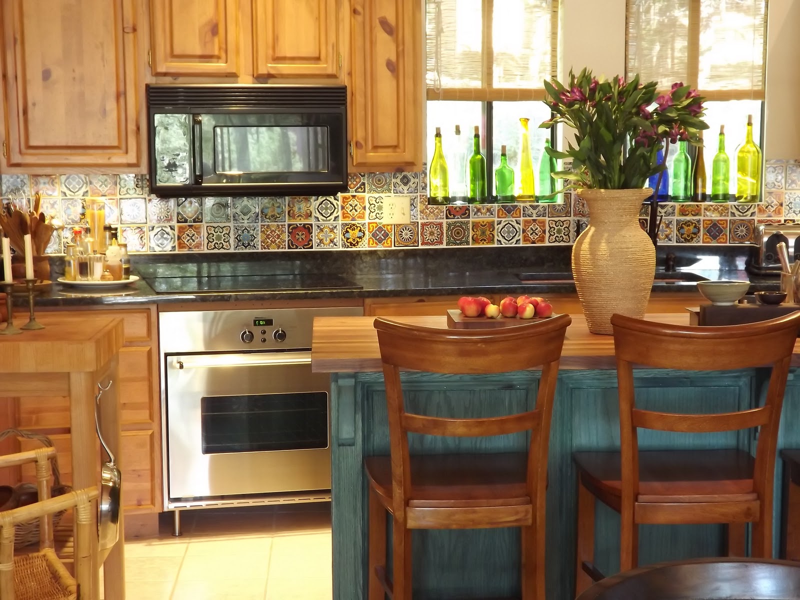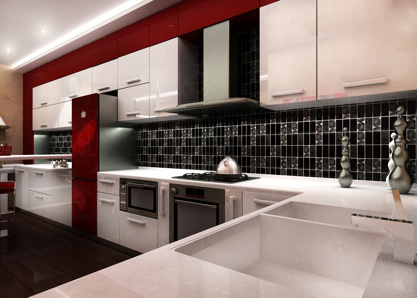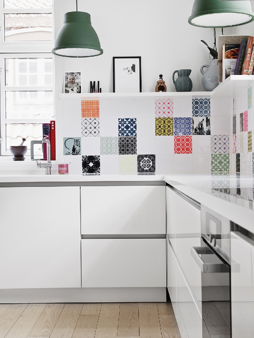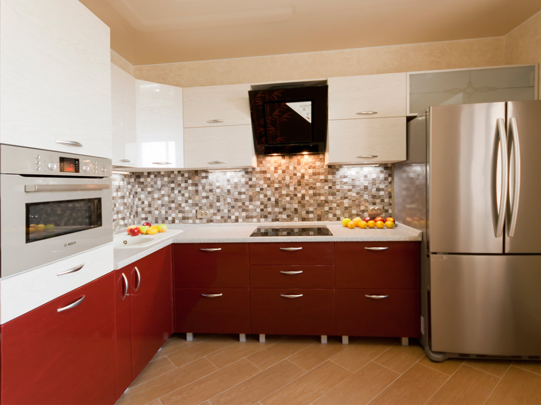 กำแพงการทำงาน ในห้องครัว เรียกว่าผ้ากันเปื้อน บริเวณนี้มีน้ำจาระบีดังนั้นจึงแนะนำให้วางกระเบื้องโมเสคผ้ากันเปื้อนออกซึ่งเป็นกระเบื้องขนาดเล็กปกติ