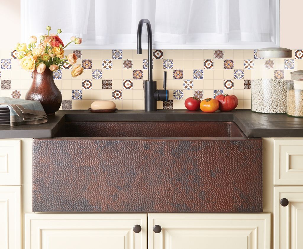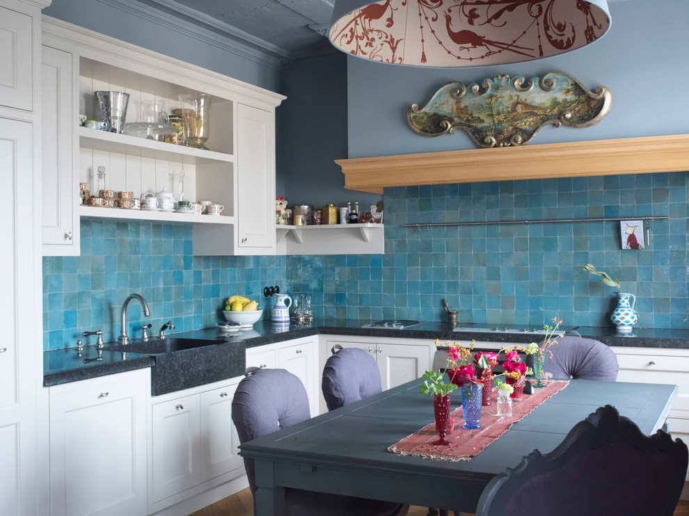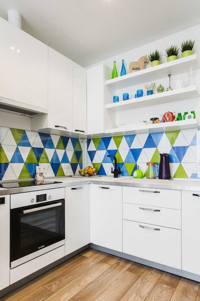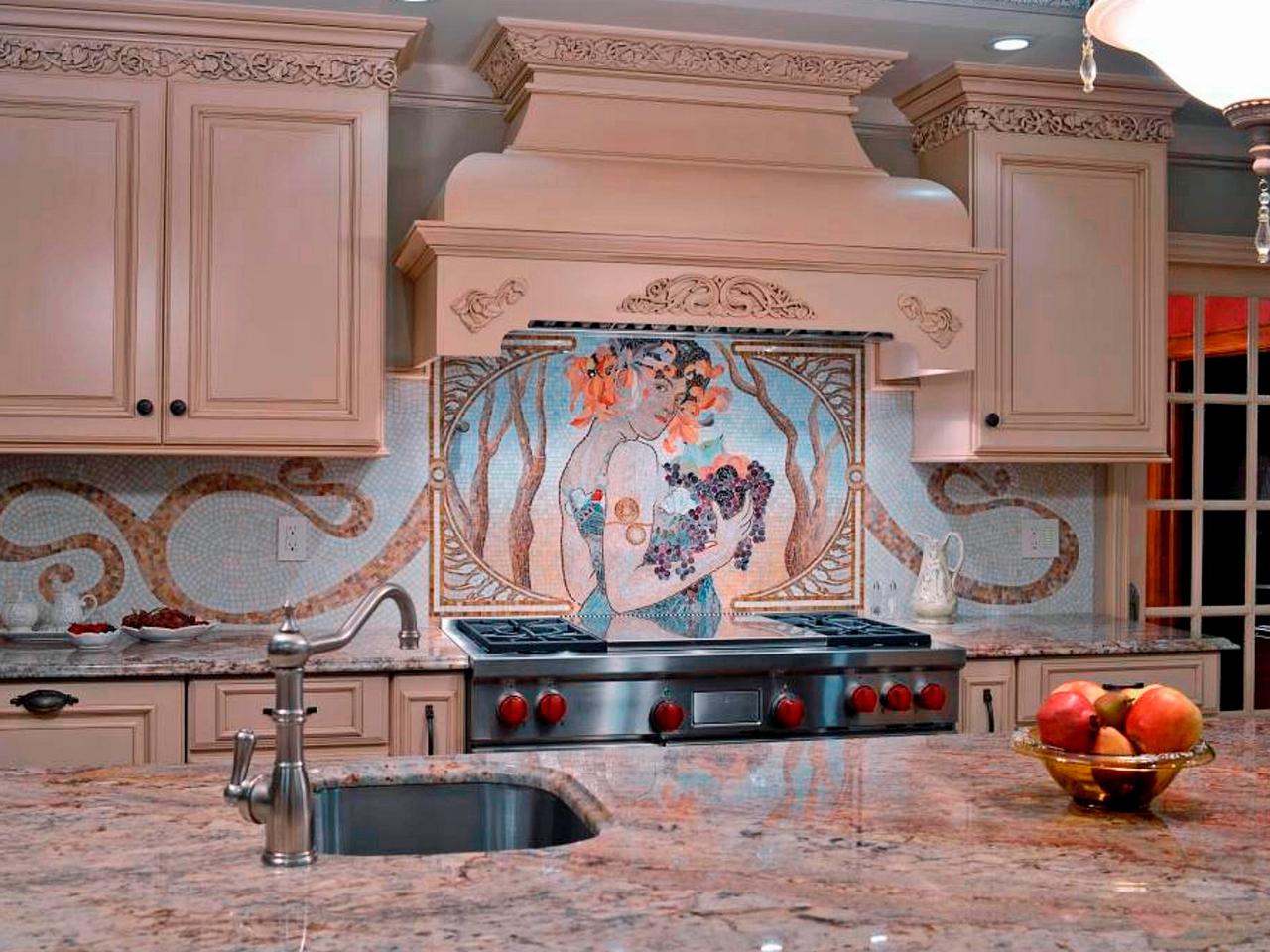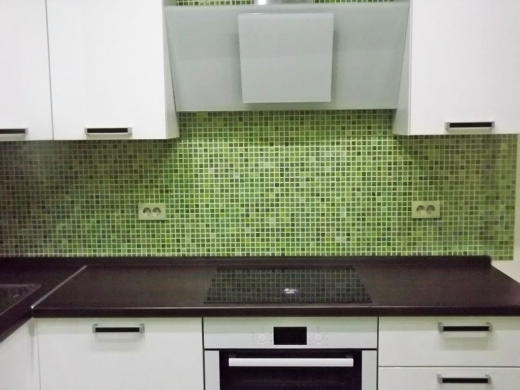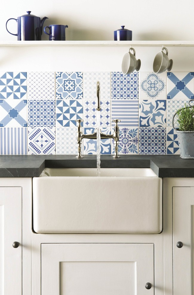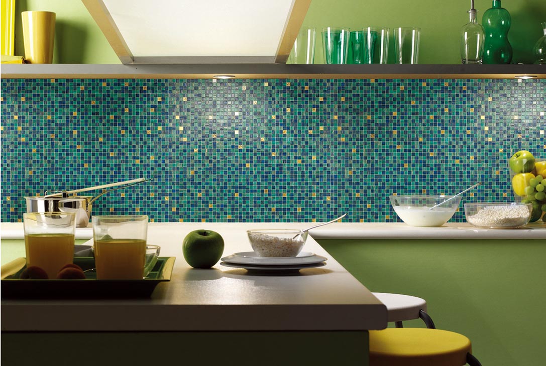 กระเบื้องโมเสคผ้ากันเปื้อนมักจะทำในโทนสีเตียงหรือในเฉดที่งดงามตรงข้าม