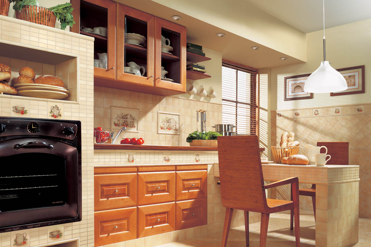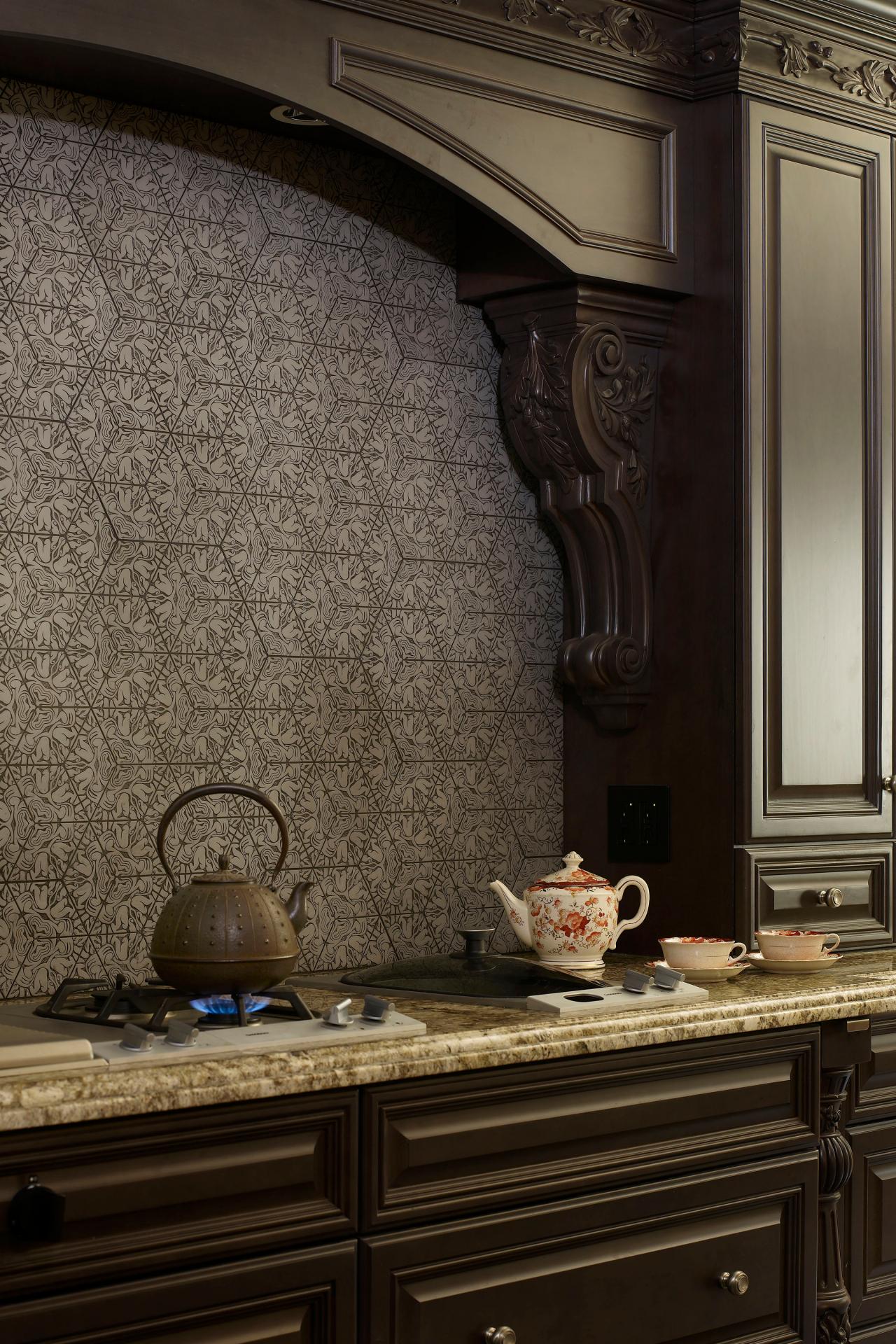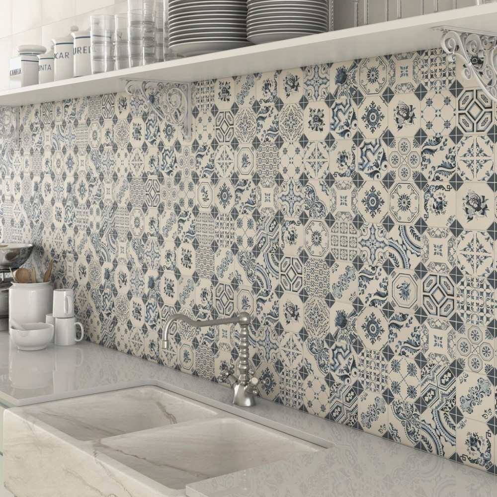- ความซับซ้อนของการวางกระเบื้องที่มีลวดลายอยู่ในการเลือกองค์ประกอบที่ถูกต้องเพื่อให้ได้รูปแบบที่ถูกต้องตามมา เสร็จนี้โดดเด่นด้วยความสวยงามสูงฟื้นพื้นที่ห้องครัว