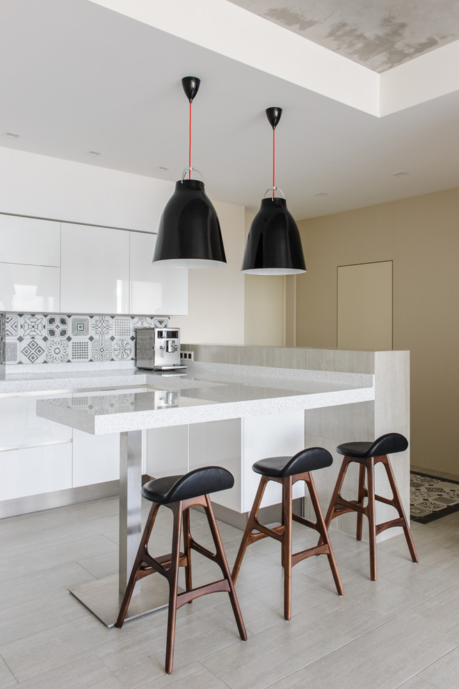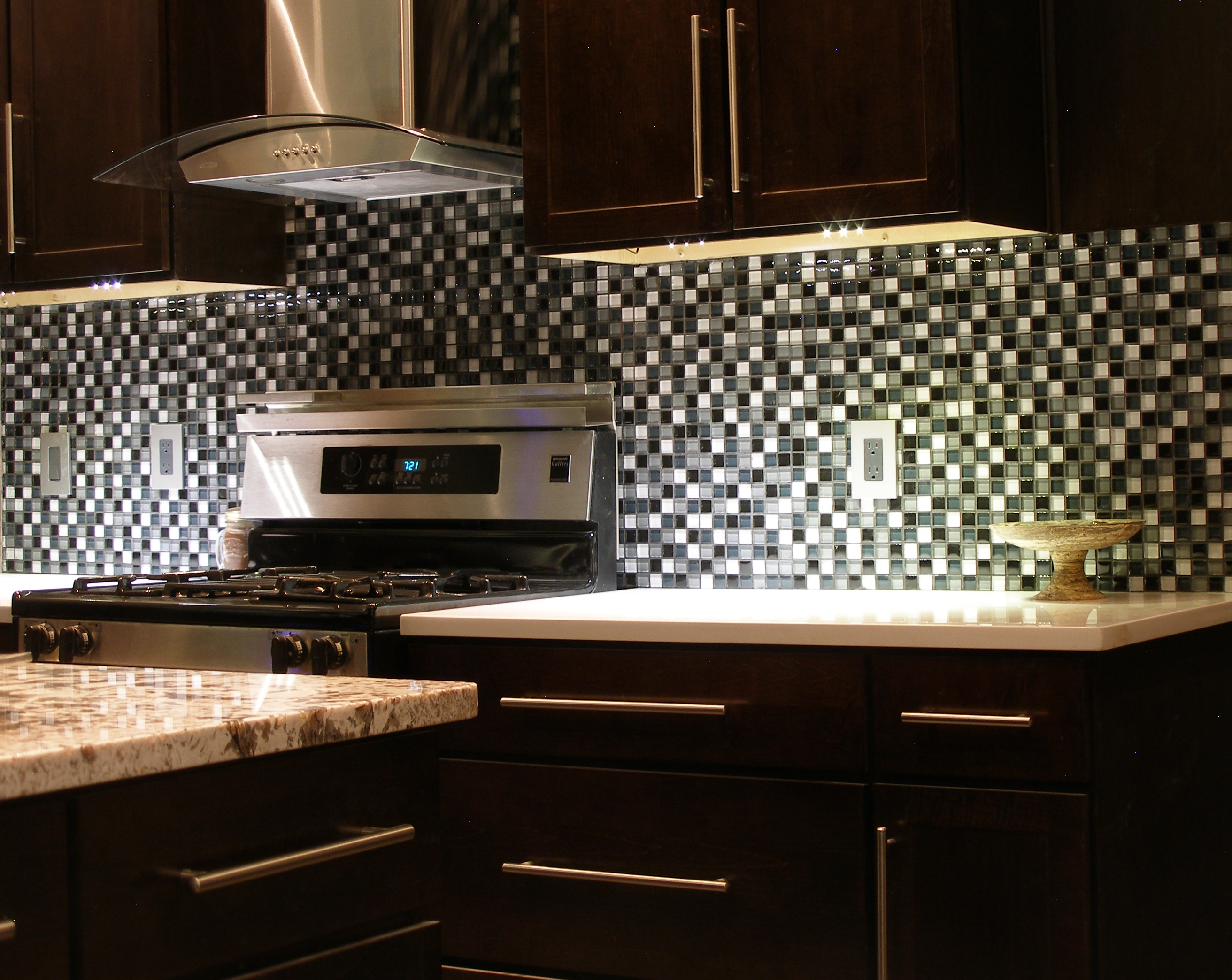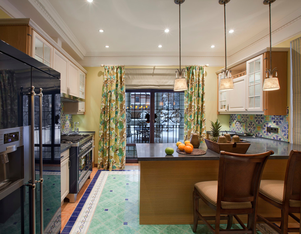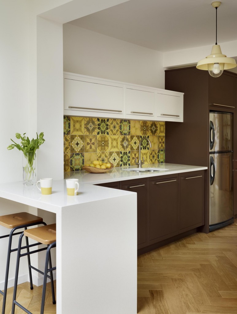 - ความซับซ้อนของการวางกระเบื้องที่มีลวดลายอยู่ในการเลือกองค์ประกอบที่ถูกต้องเพื่อให้ได้รูปแบบที่ถูกต้องตามมา เสร็จนี้โดดเด่นด้วยความสวยงามสูงฟื้นพื้นที่ห้องครัว