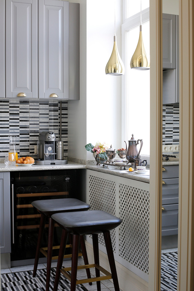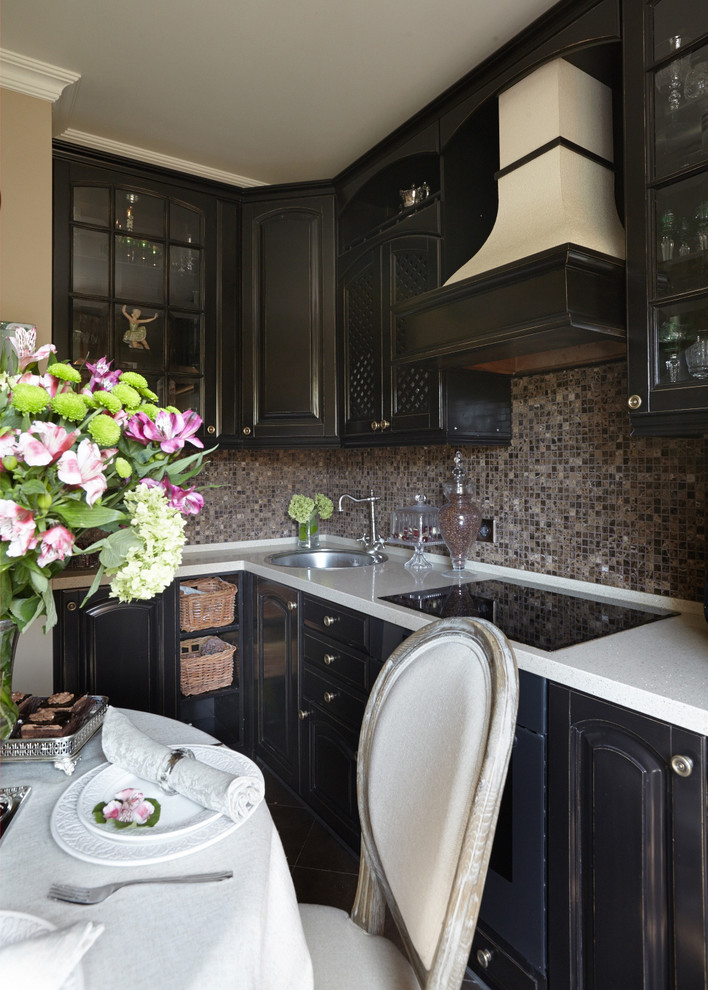 - หากห้องครัวของคุณมีขนาดเล็กอย่าใช้องค์ประกอบที่มีรูปแบบเพชรเช่นรูปแบบดังกล่าวจะลดขนาดของห้อง