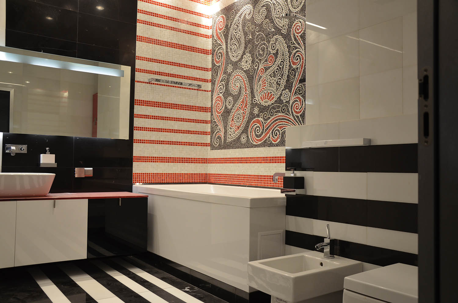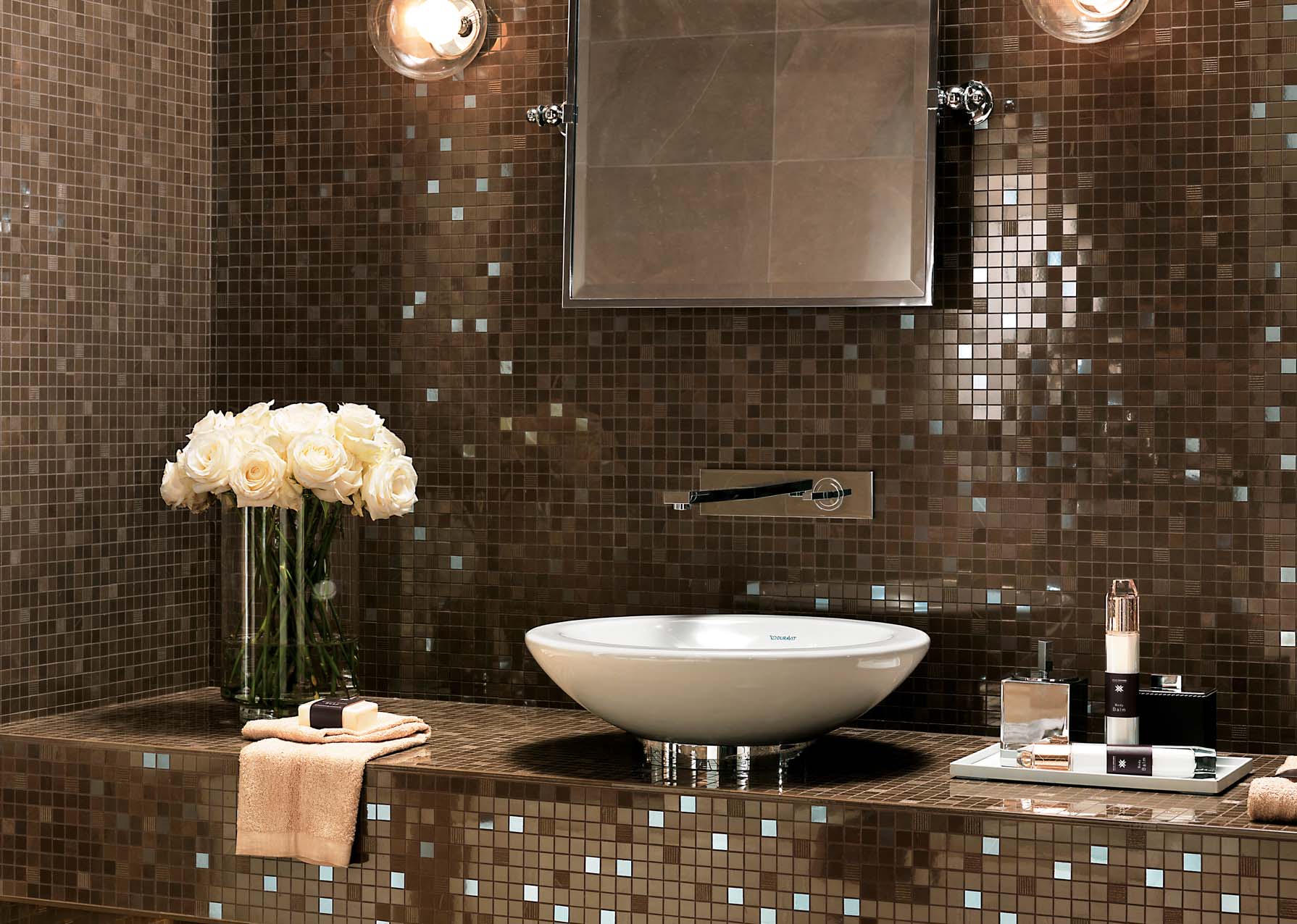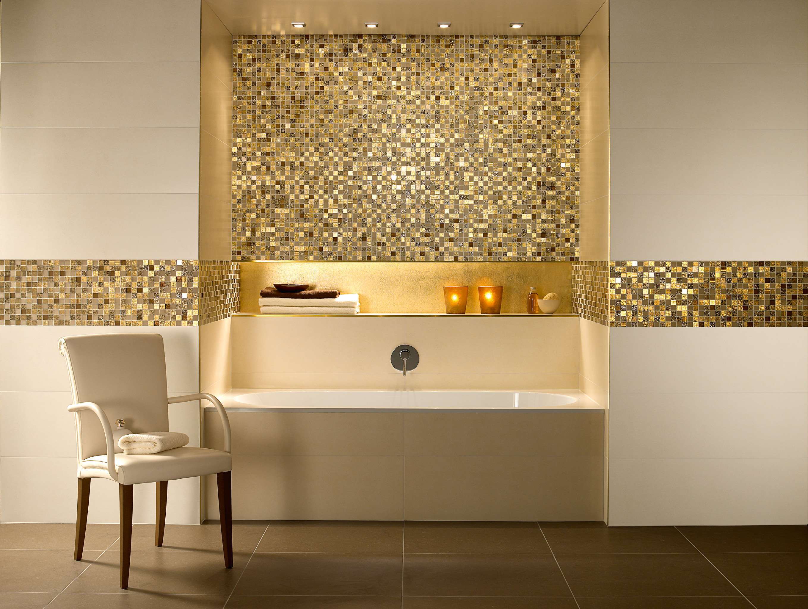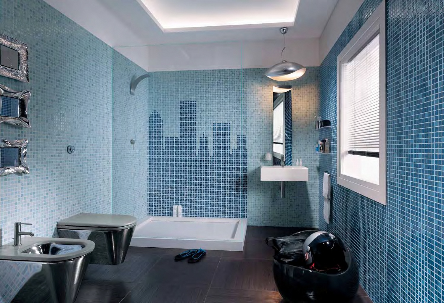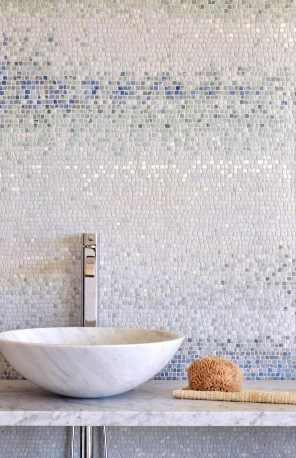แม้แต่พื้นที่ขนาดเล็กที่ตกแต่งด้วยกระเบื้องโมเสคขนาดเล็กจะโดดเด่นในการออกแบบของห้อง แต่เนื่องจากวัสดุมีราคาสูงจึงไม่สามารถใช้งานได้ทุกคน