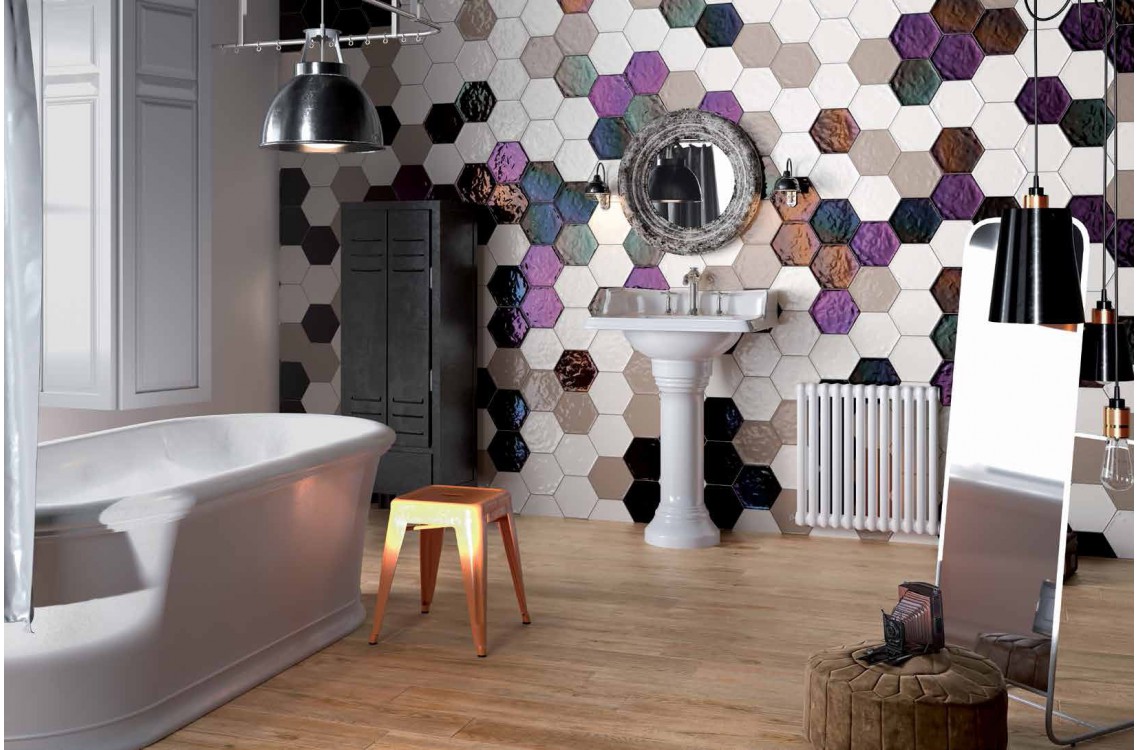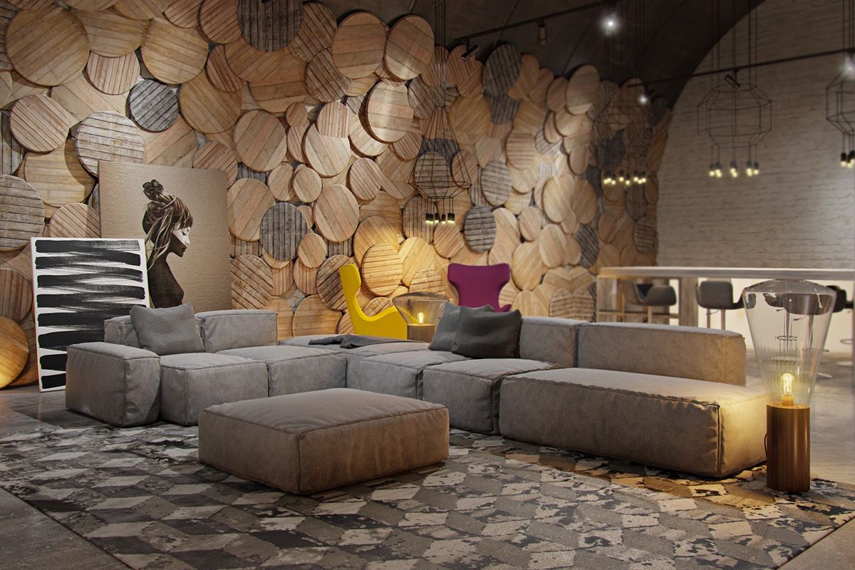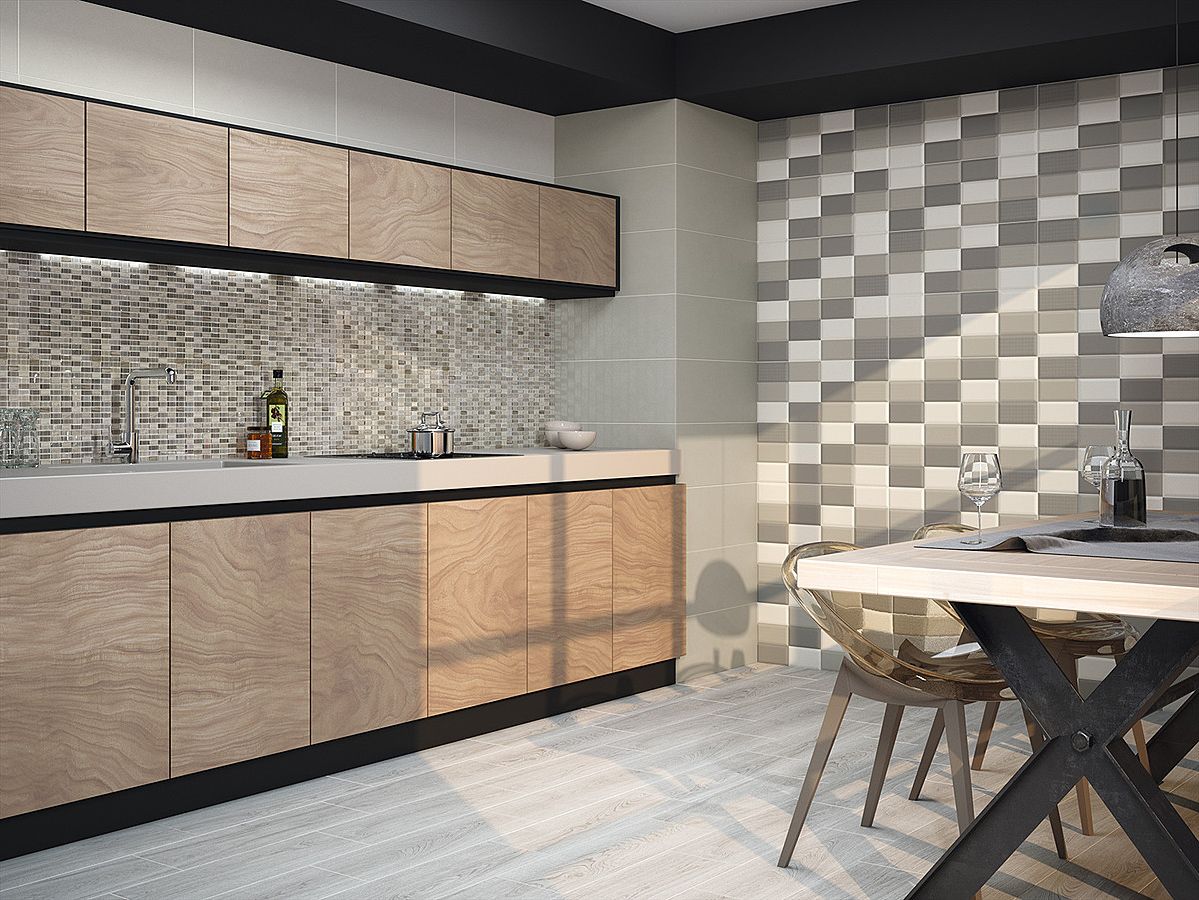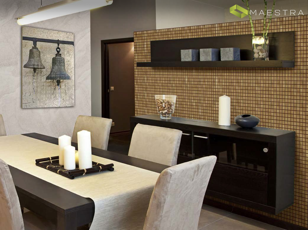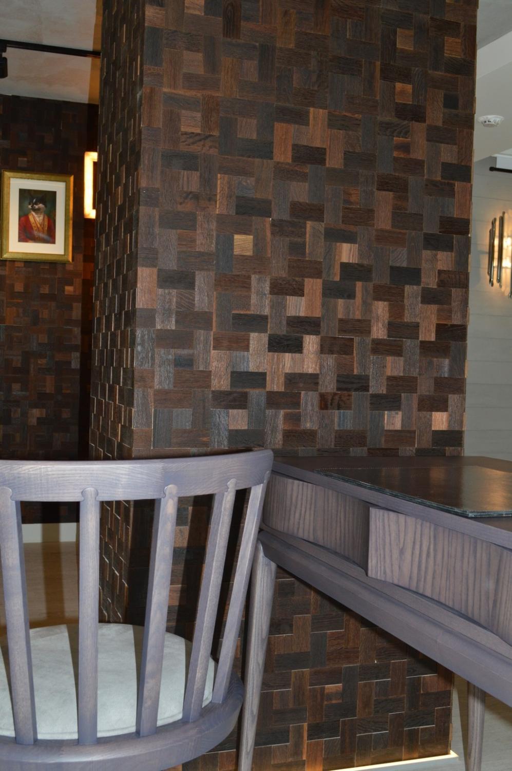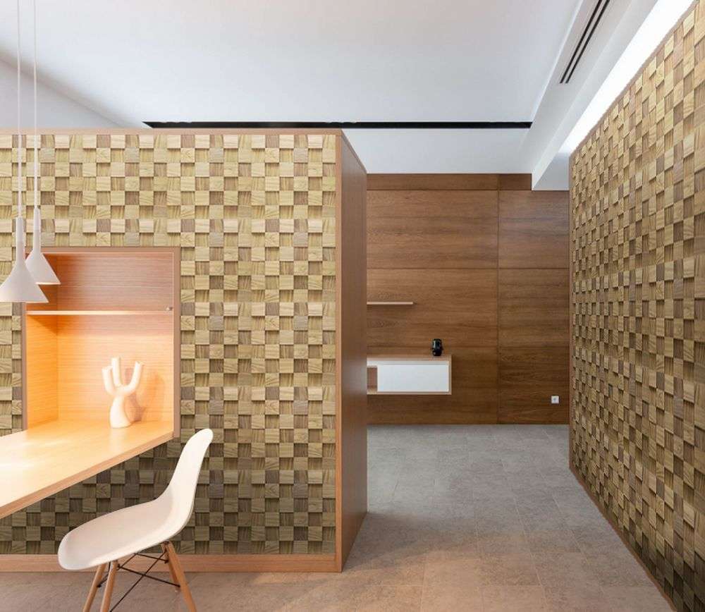 กระเบื้องโมเสคไม้จะพอดีกับสไตล์ของเทคโนลอฟท์ ภายนอกมันดูแปลกและเป็นต้นฉบับมาก